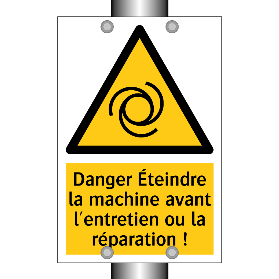 Panneau d'avertissement avec le texte : "Danger Éteindre la machine avant l'entretien ou la réparation !"