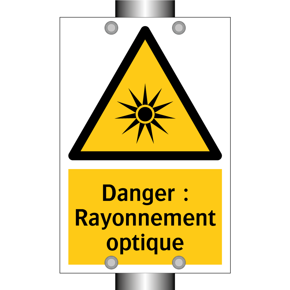 Panneau d'avertissement avec le texte : "Danger : Rayonnement optique"