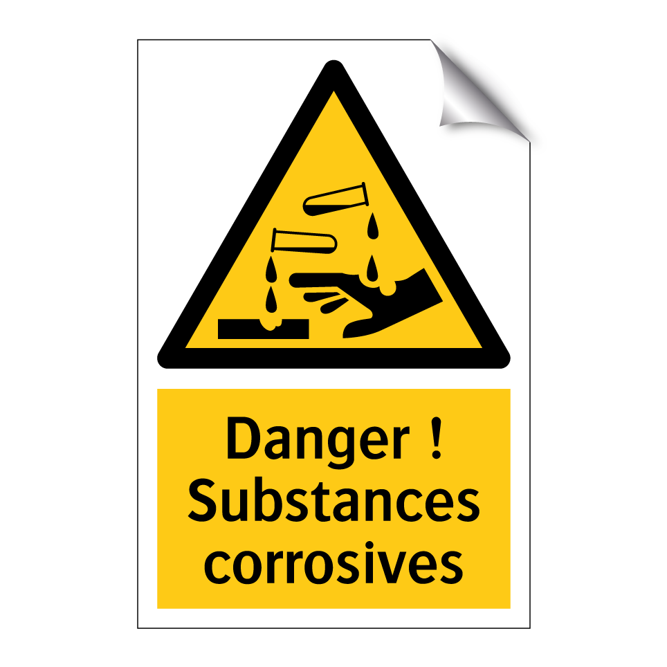 Panneau d'avertissement avec le texte : "Danger ! Substances corrosives"