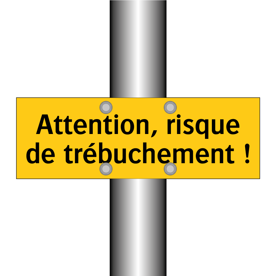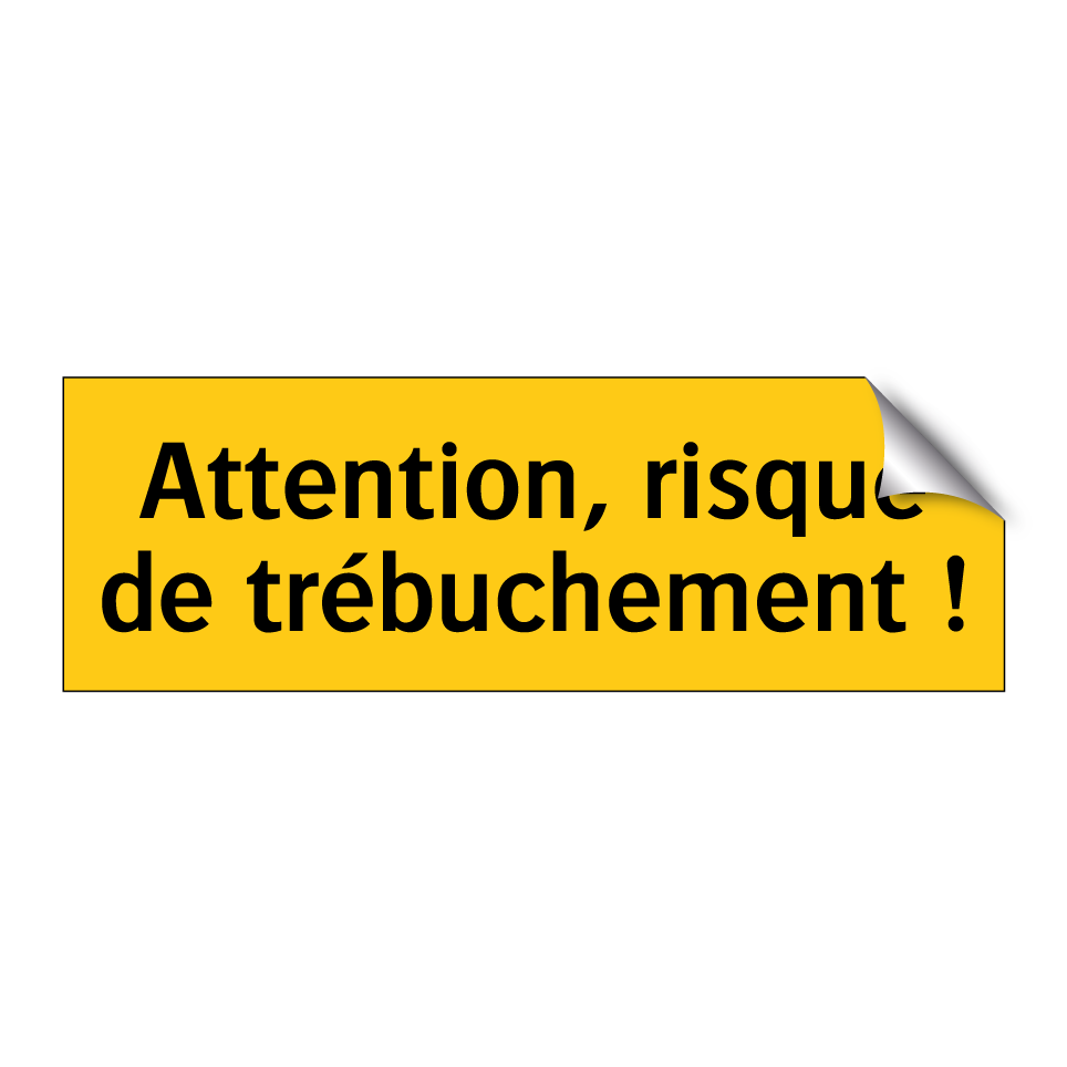 Panneau d'avertissement avec le texte : "Attention, risque de trébuchement !"