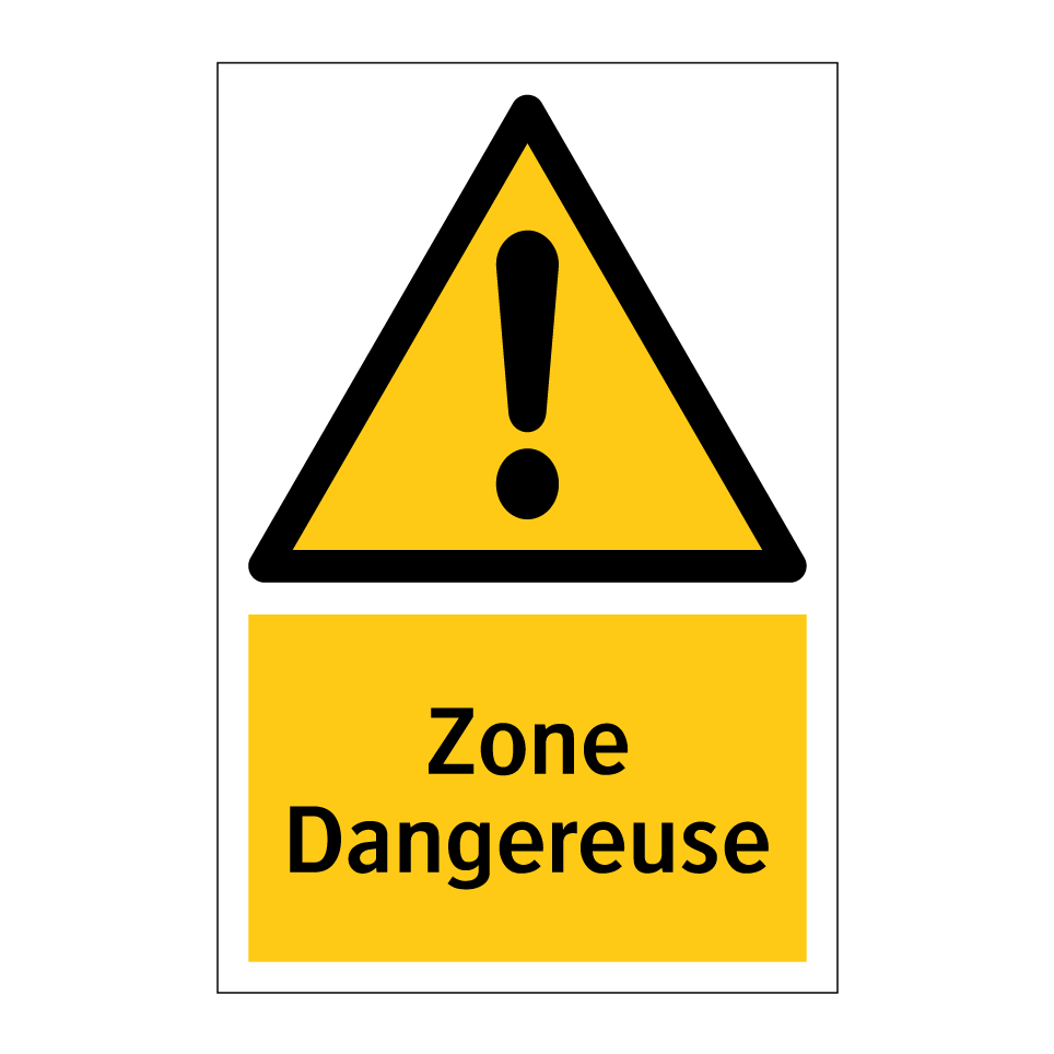 Panneau d'avertissement avec le texte : "Zone Dangereuse"