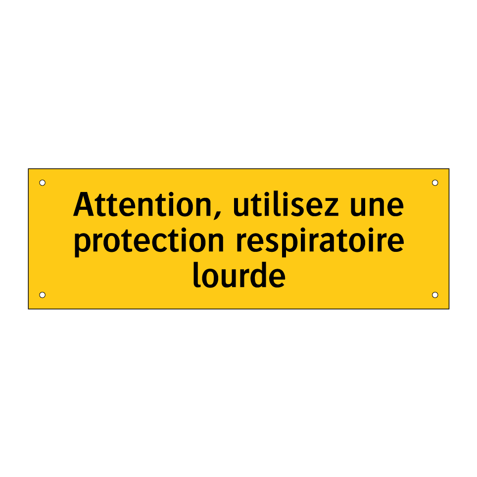 Panneau d'avertissement avec le texte : "Attention, utilisez une protection respiratoire lourde"