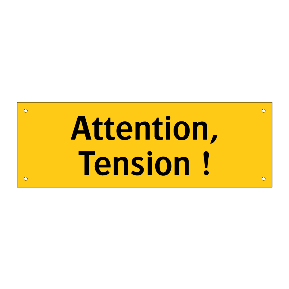 Panneau d'avertissement avec le texte : "Attention, Tension !"