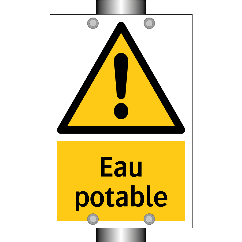 Ce panneau d'avertissement est essentiel pour indiquer la présence d'eau potable. Idéal pour les espaces publics tels que les parcs, les aires de repos ou les installations sportives, il assure que les visiteurs peuvent identifier rapidement les points d'eau sûrs. Ce type de signalisation est également utile dans les bâtiments commerciaux ou industriels, garantissant que les employés et les visiteurs savent où trouver de l'eau propre à la consommation. Grâce à sa couleur jaune vive et son texte noir contrastant, ce panneau attire immédiatement l'attention, réduisant ainsi les risques de confusion. Placez-le à proximité des fontaines ou des robinets pour une visibilité optimale.
