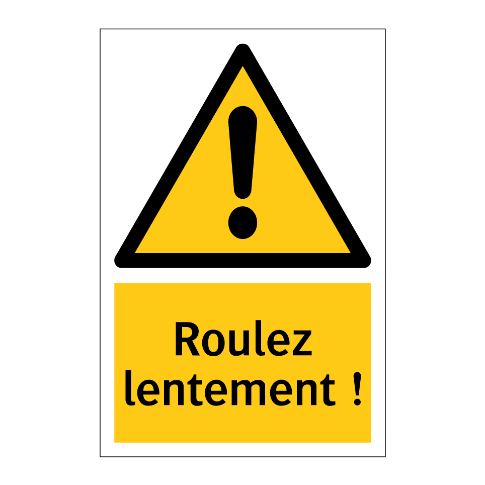 Panneau d'avertissement avec le texte : "Roulez lentement !"