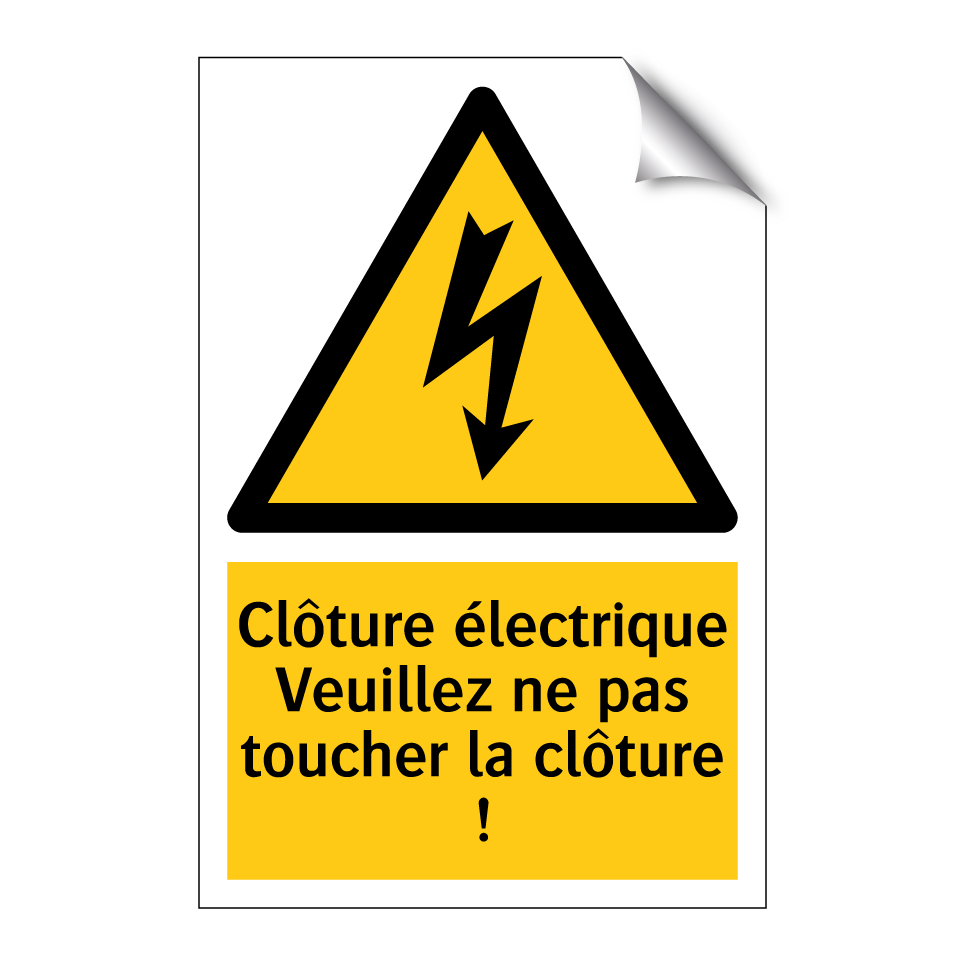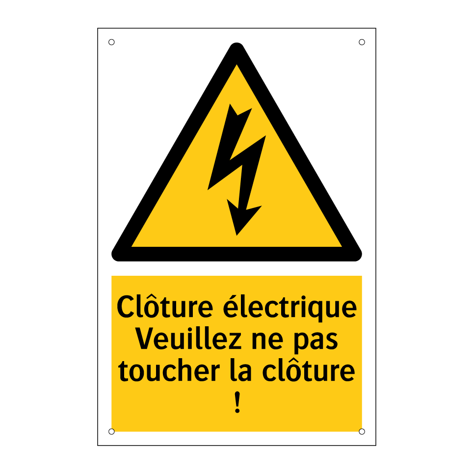 Panneau d'avertissement avec le texte : "Clôture électrique Veuillez ne pas toucher la clôture !"