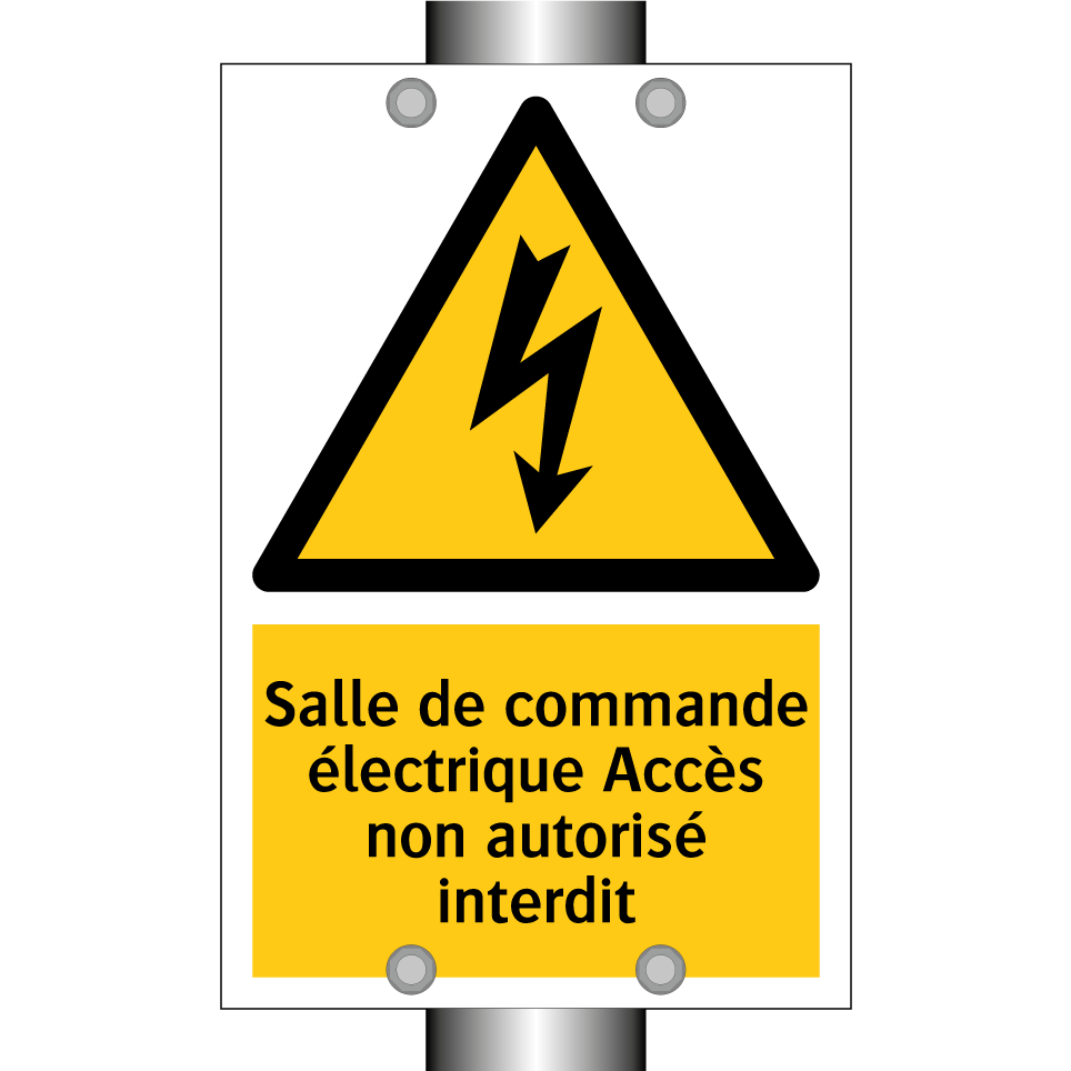 Panneau d'avertissement avec le texte : "Salle de commande électrique Accès non autorisé interdit"