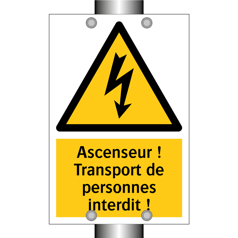 Panneau d'avertissement avec le texte : "Ascenseur ! Transport de personnes interdit !"