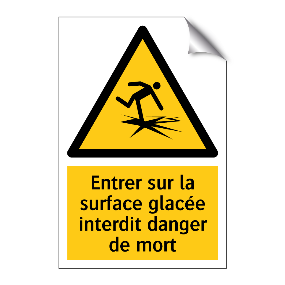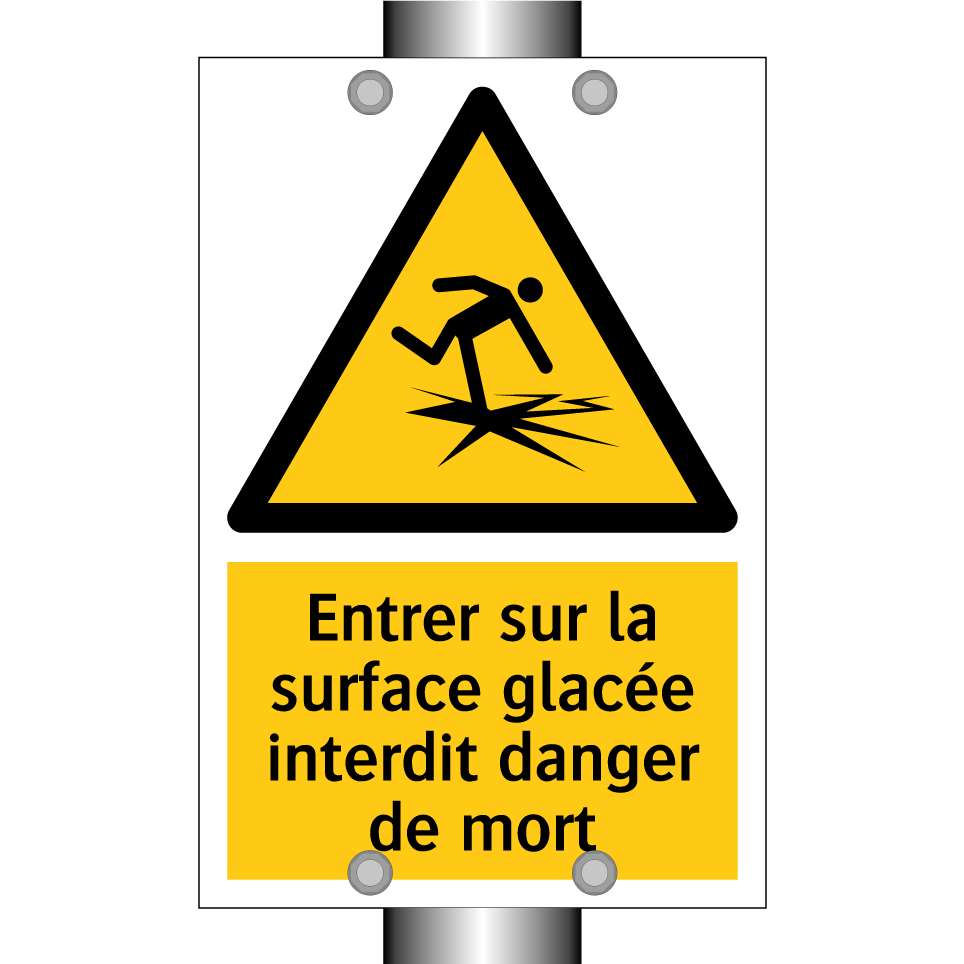 Panneau d'avertissement avec le texte : "Entrer sur la surface glacée interdit danger de mort"