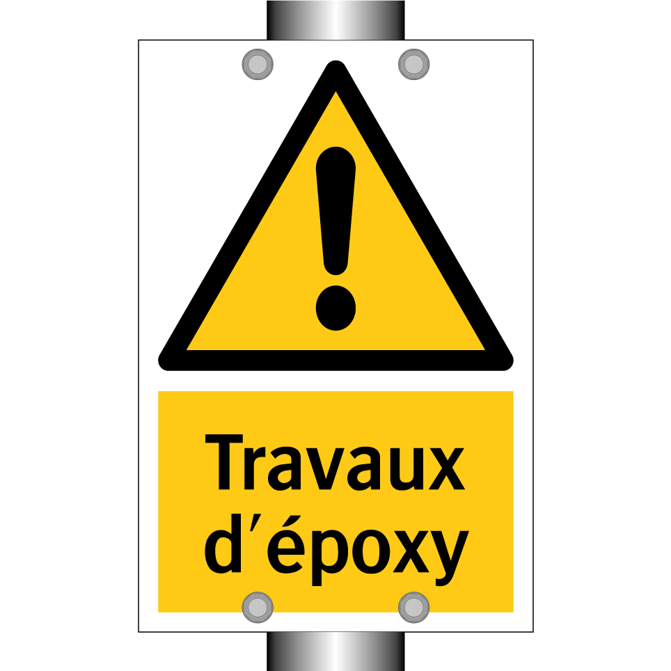 Panneau d'avertissement avec le texte : "Travaux d'époxy"