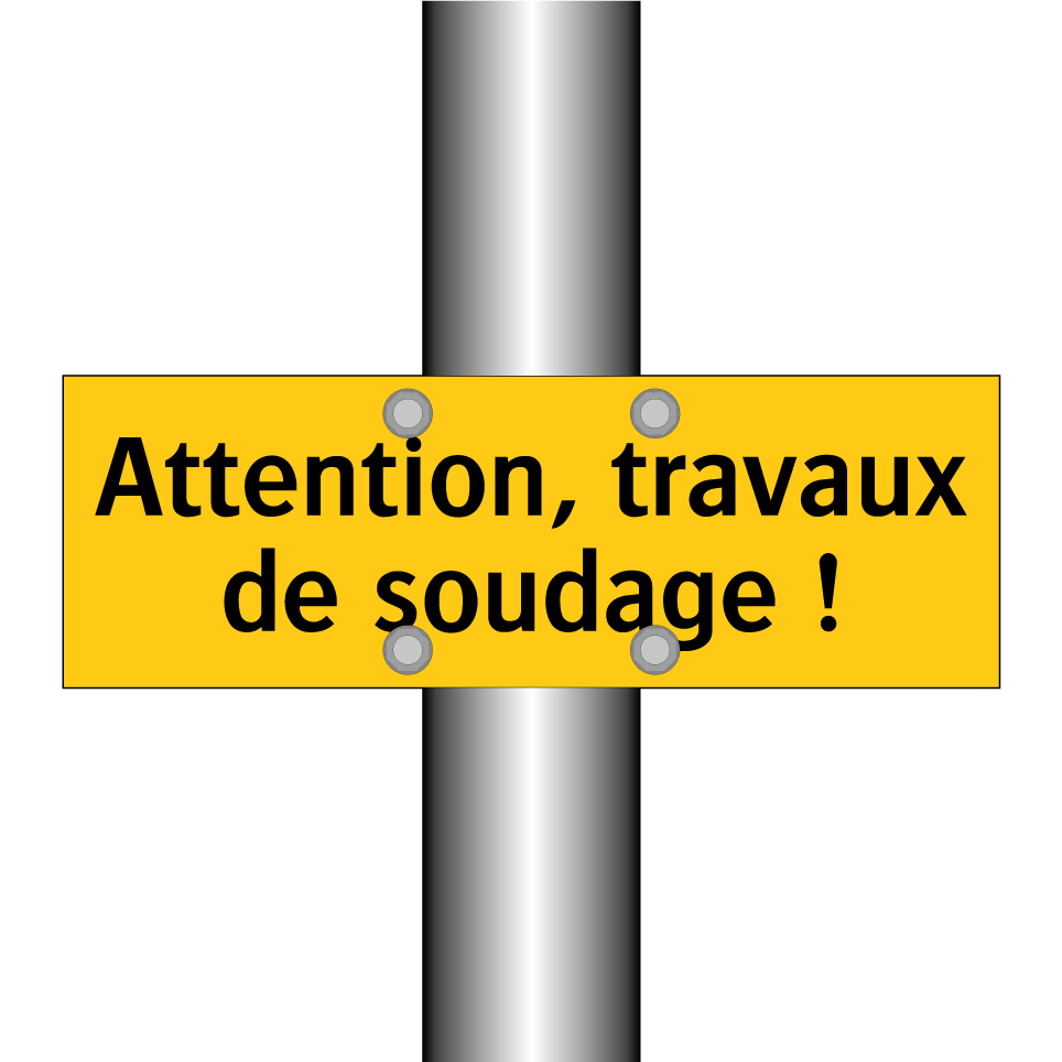Panneau d'avertissement avec le texte : "Attention, travaux de soudage !"