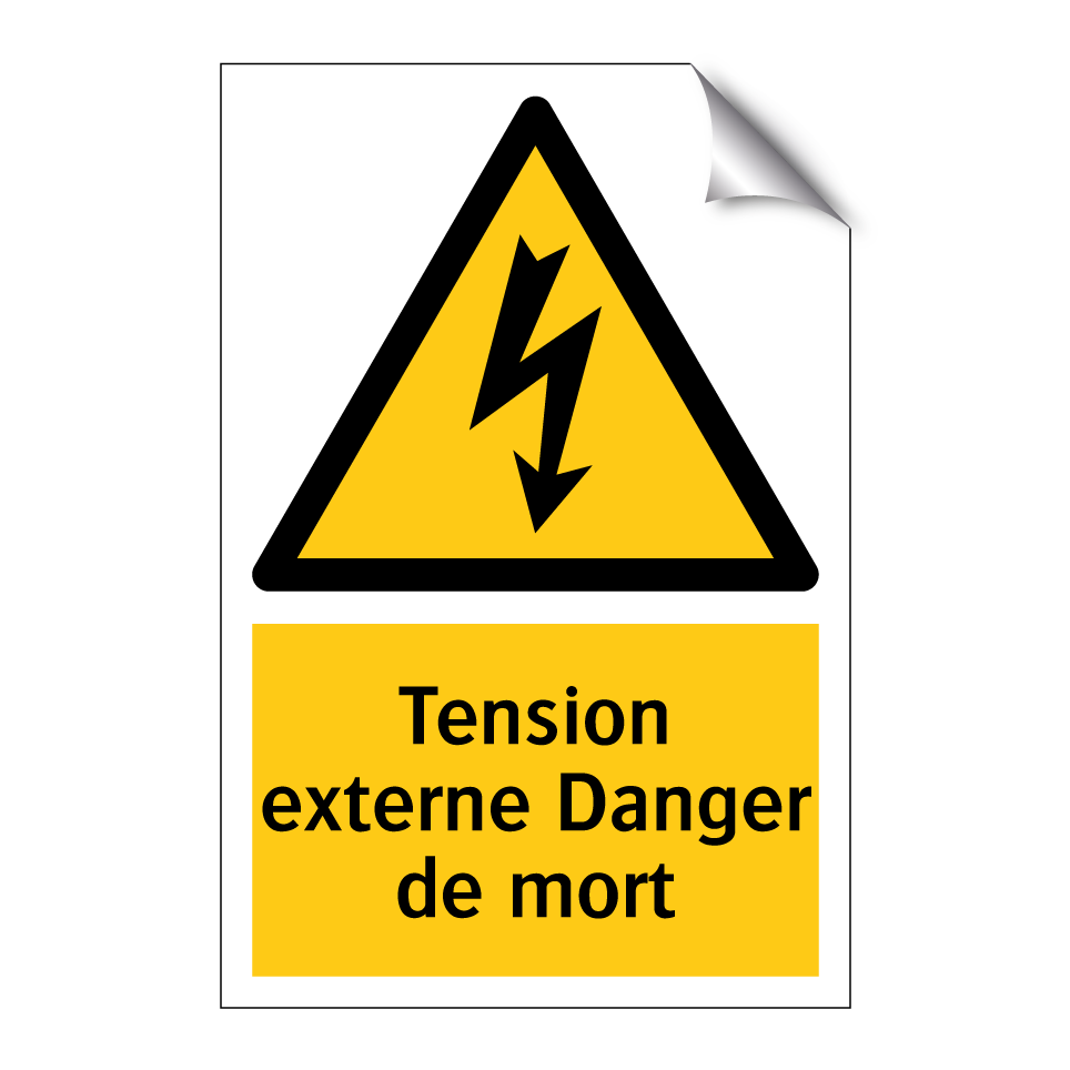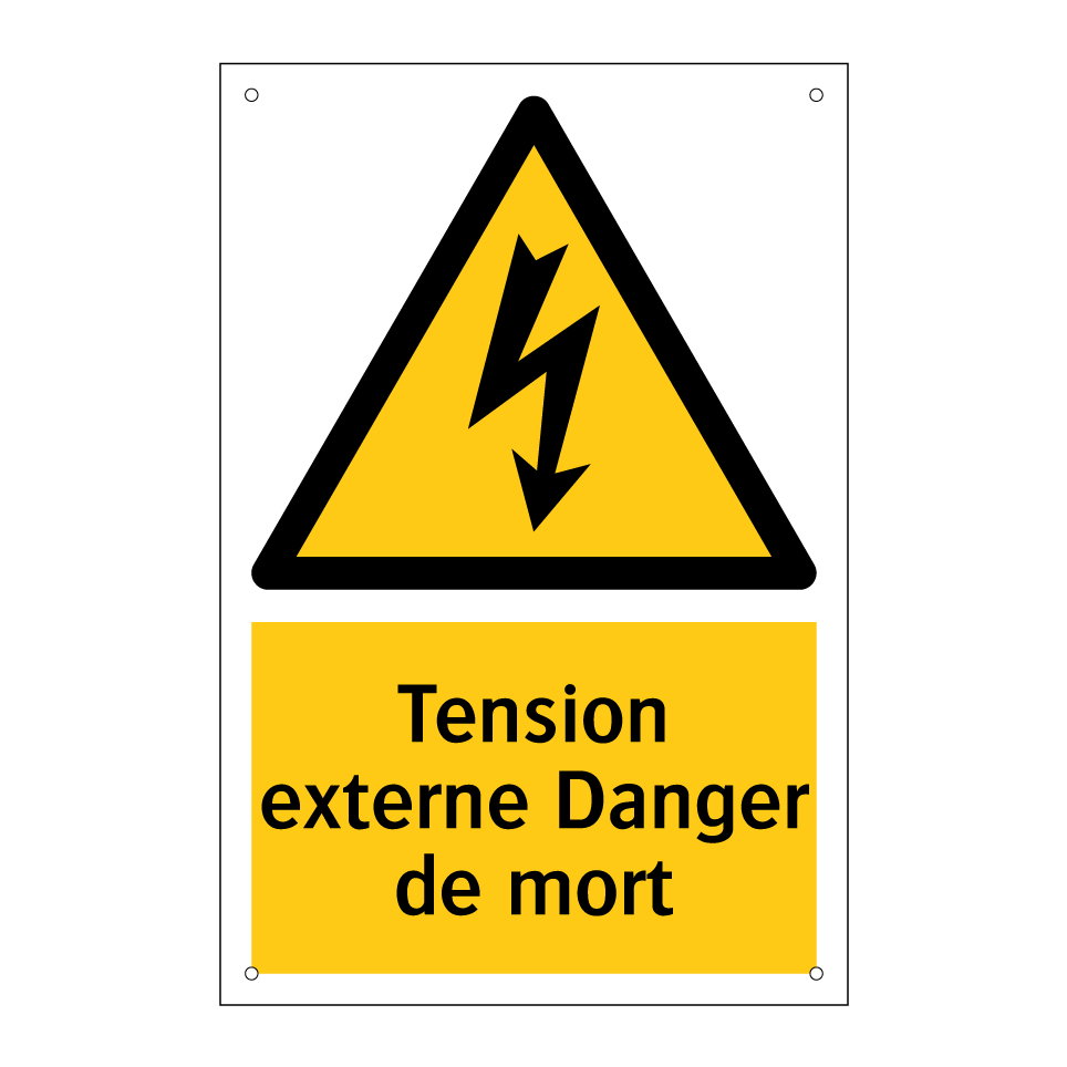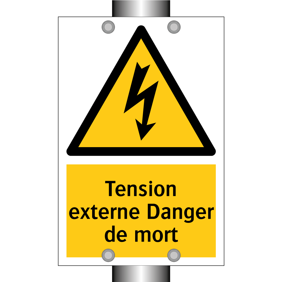 Panneau d'avertissement avec le texte : "Tension externe Danger de mort"