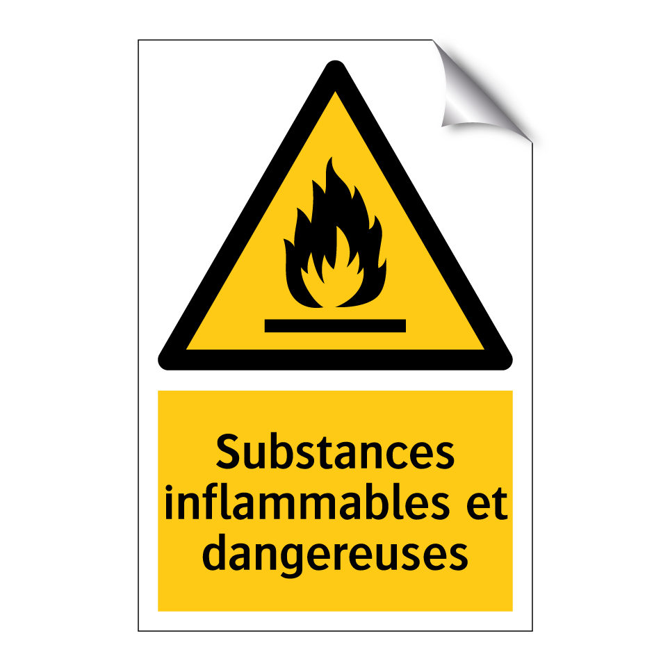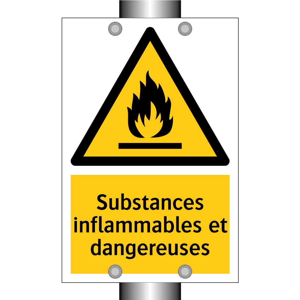 Panneau d'avertissement avec le texte : "Substances inflammables et dangereuses"