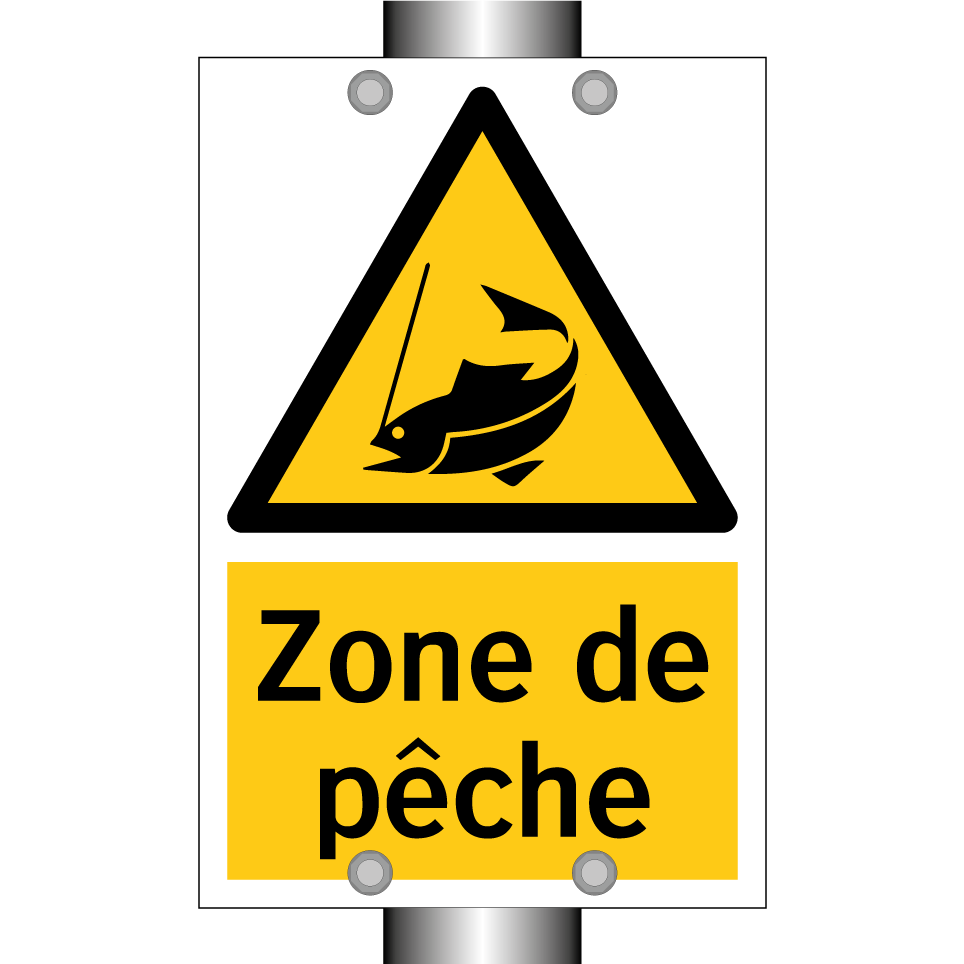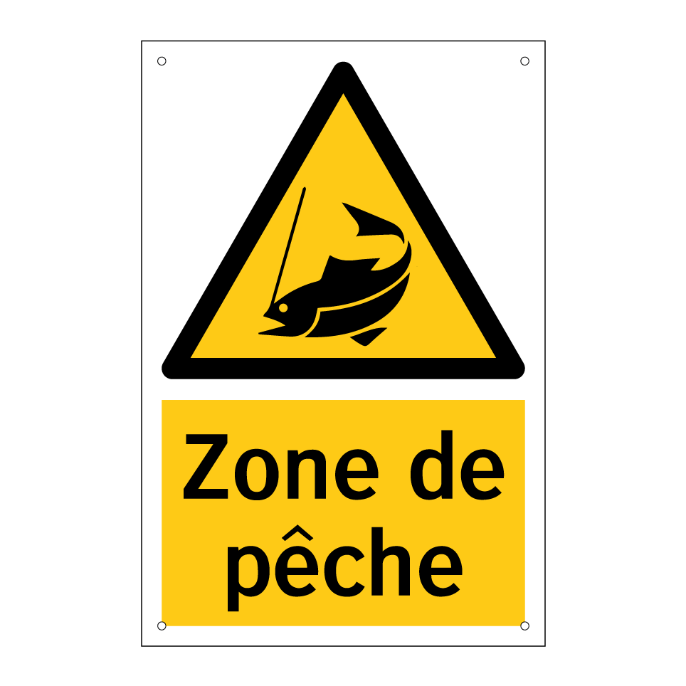 Panneau d'avertissement avec le texte : "Zone de pêche"