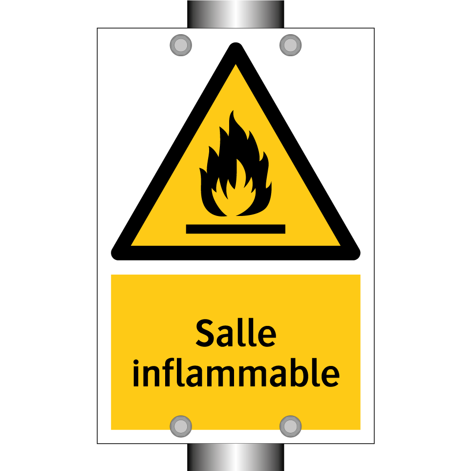 Panneau d'avertissement avec le texte : "Salle inflammable"