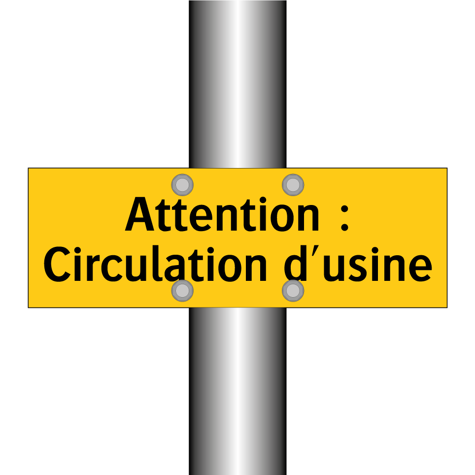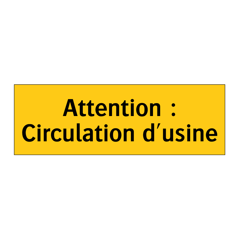 Panneau d'avertissement avec le texte : "Attention : Circulation d'usine"