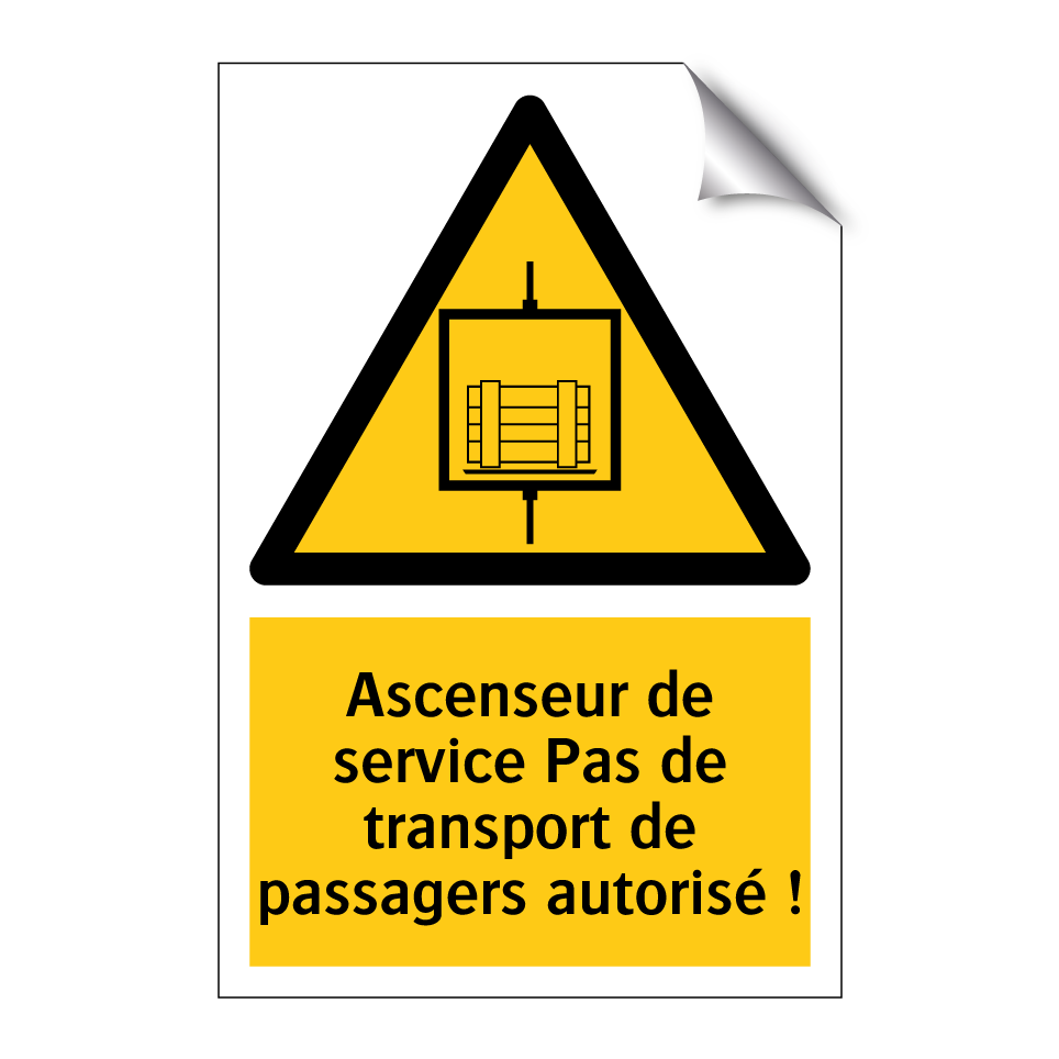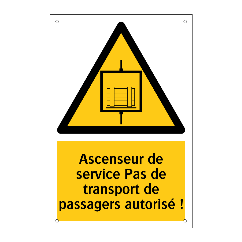 Panneau d'avertissement avec le texte : "Ascenseur de service Pas de transport de passagers autorisé !"