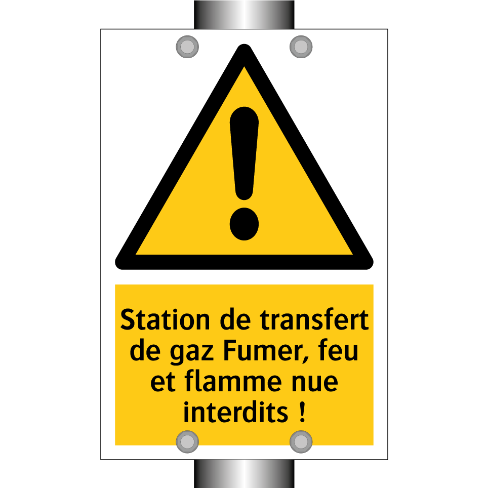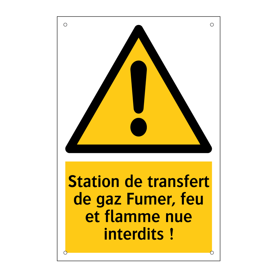 Panneau d'avertissement avec le texte : "Station de transfert de gaz Fumer, feu et flamme nue interdits !"