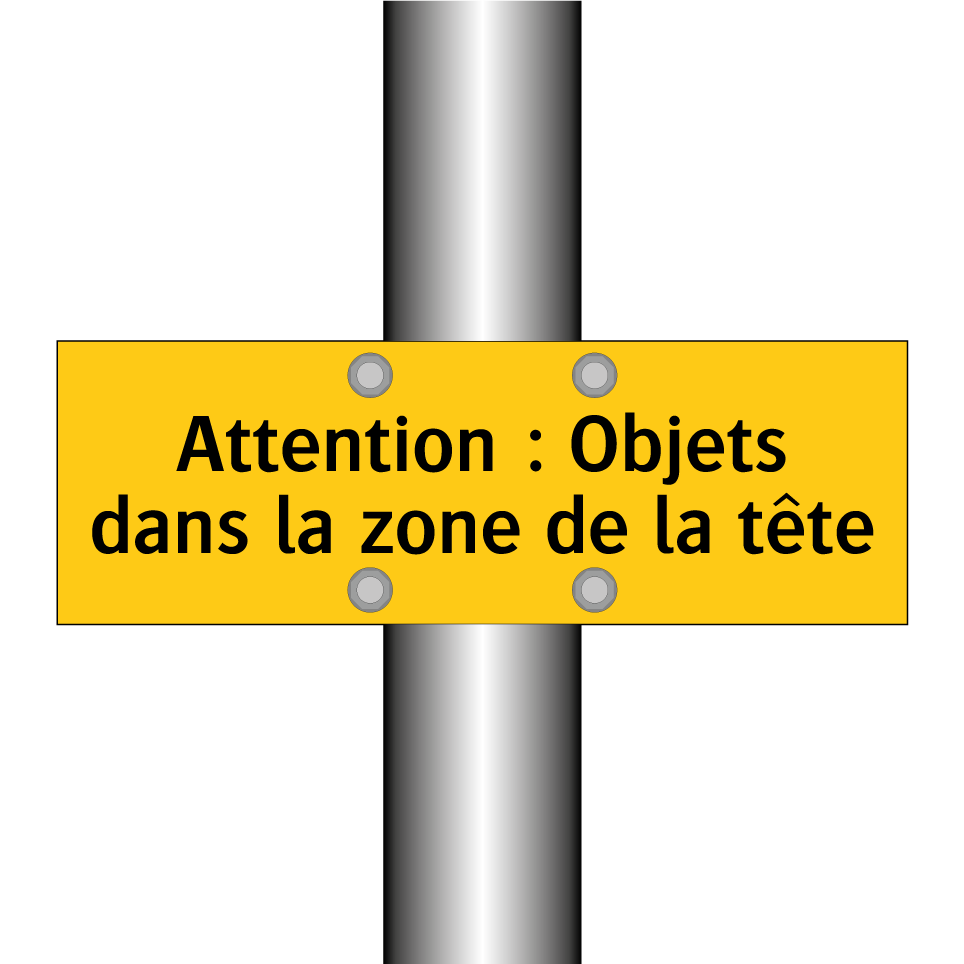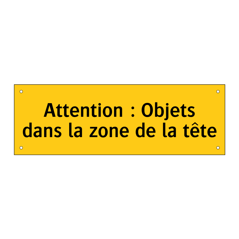 Panneau d'avertissement avec le texte : "Attention : Objets dans la zone de la tête"