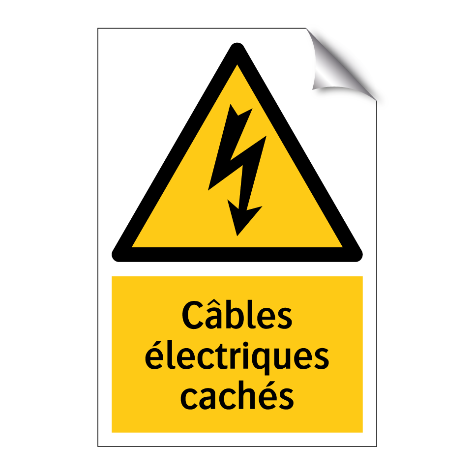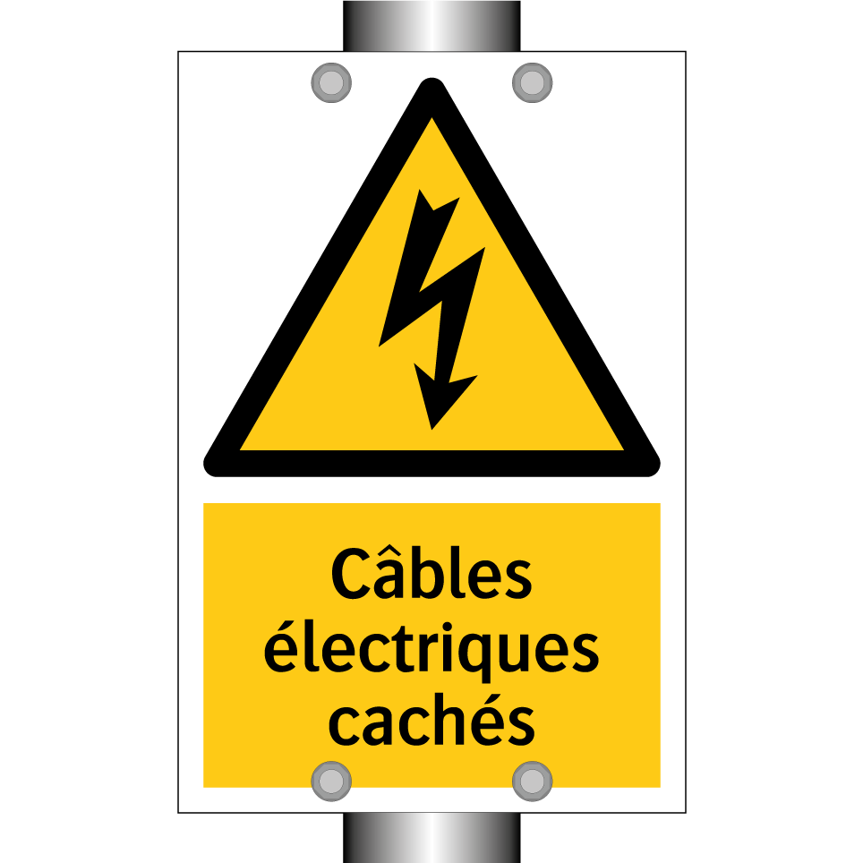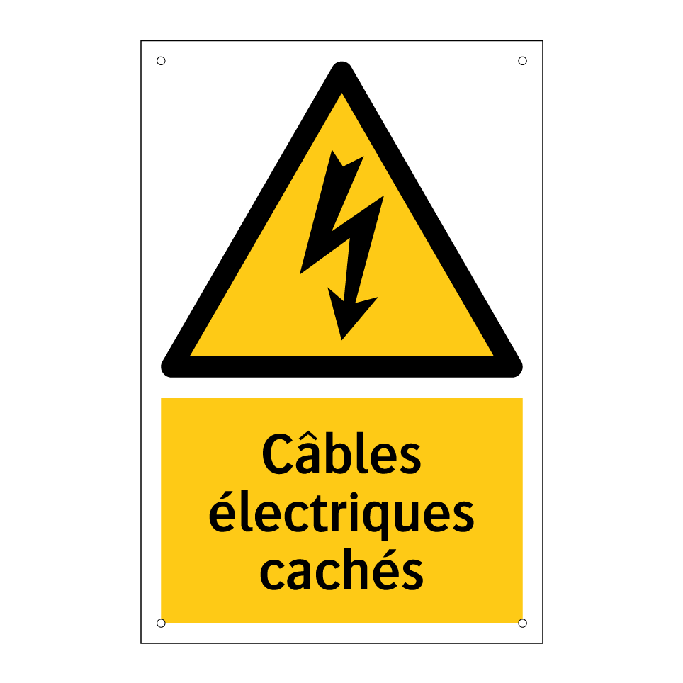 Panneau d'avertissement avec le texte : "Câbles électriques cachés"