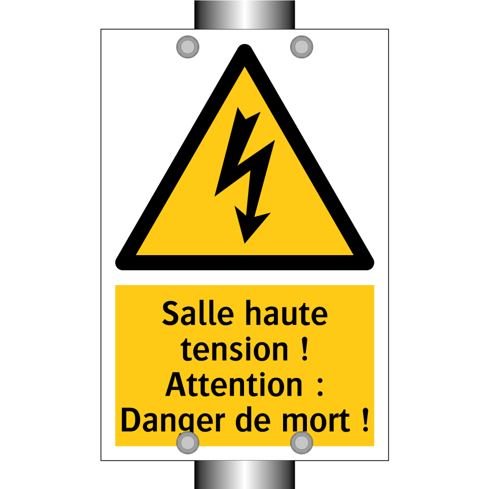 Panneau d'avertissement avec le texte : "Salle haute tension ! Attention : Danger de mort !"