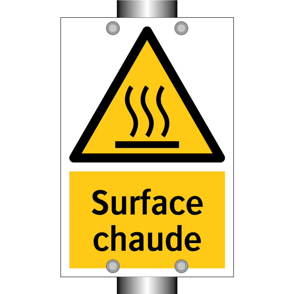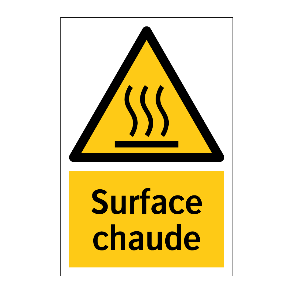 Panneau d'avertissement avec le texte : "Surface chaude"