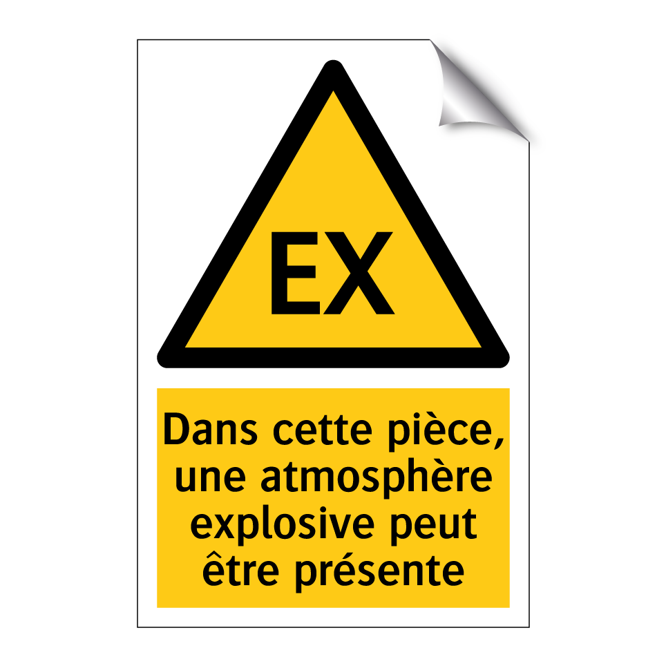 Panneau d'avertissement avec le texte : "Dans cette pièce, une atmosphère explosive peut être présente"