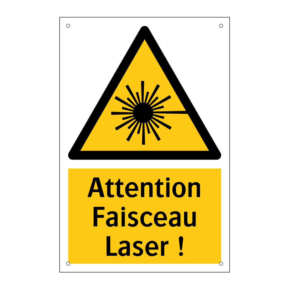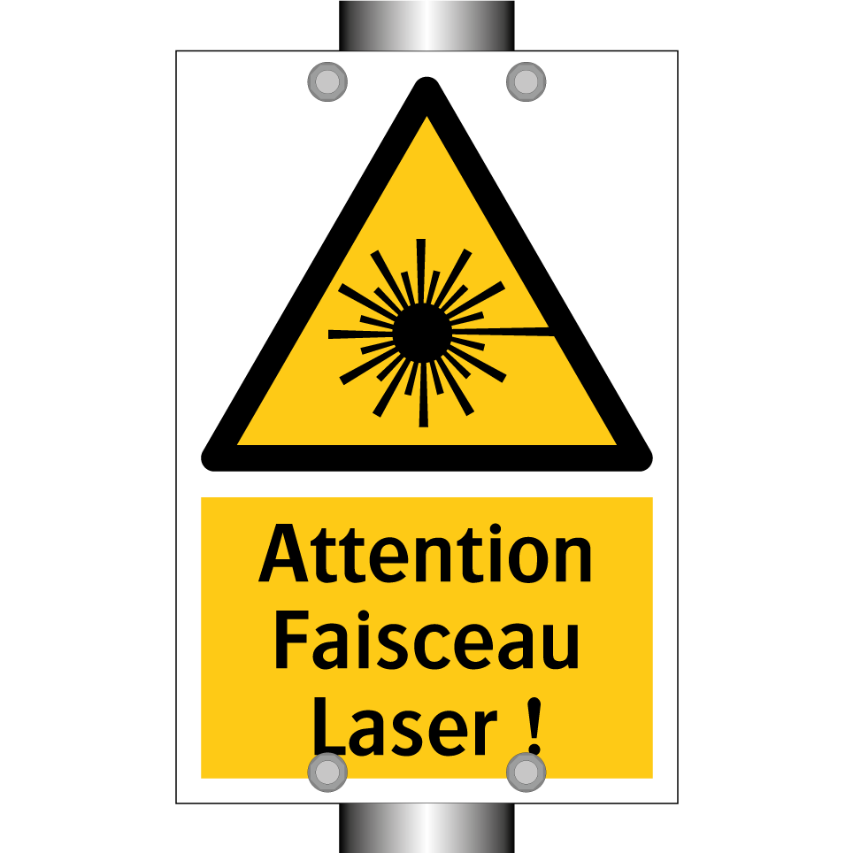 Panneau d'avertissement avec le texte : "Attention Faisceau Laser !"