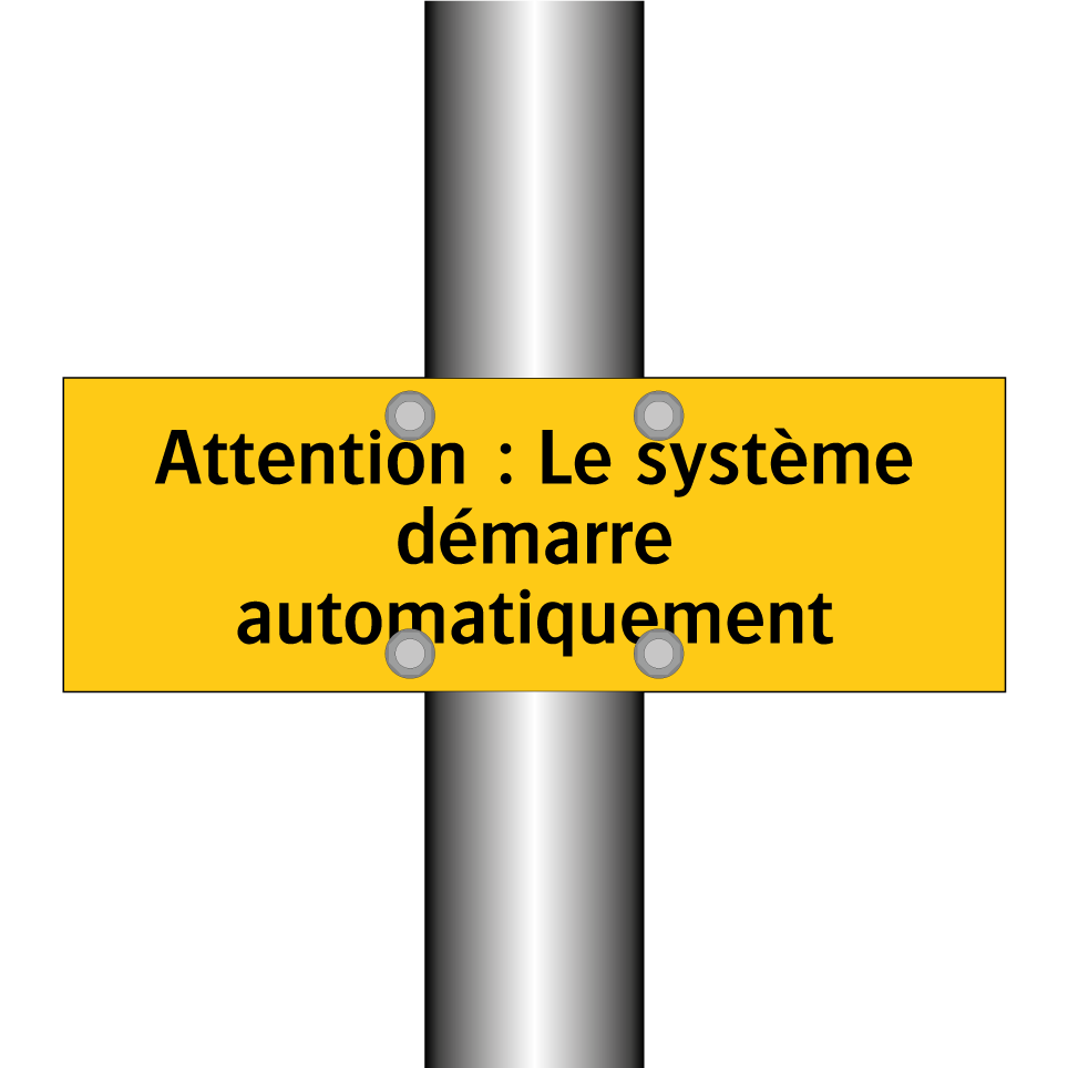Panneau d'avertissement avec le texte : "Attention : Le système démarre automatiquement"