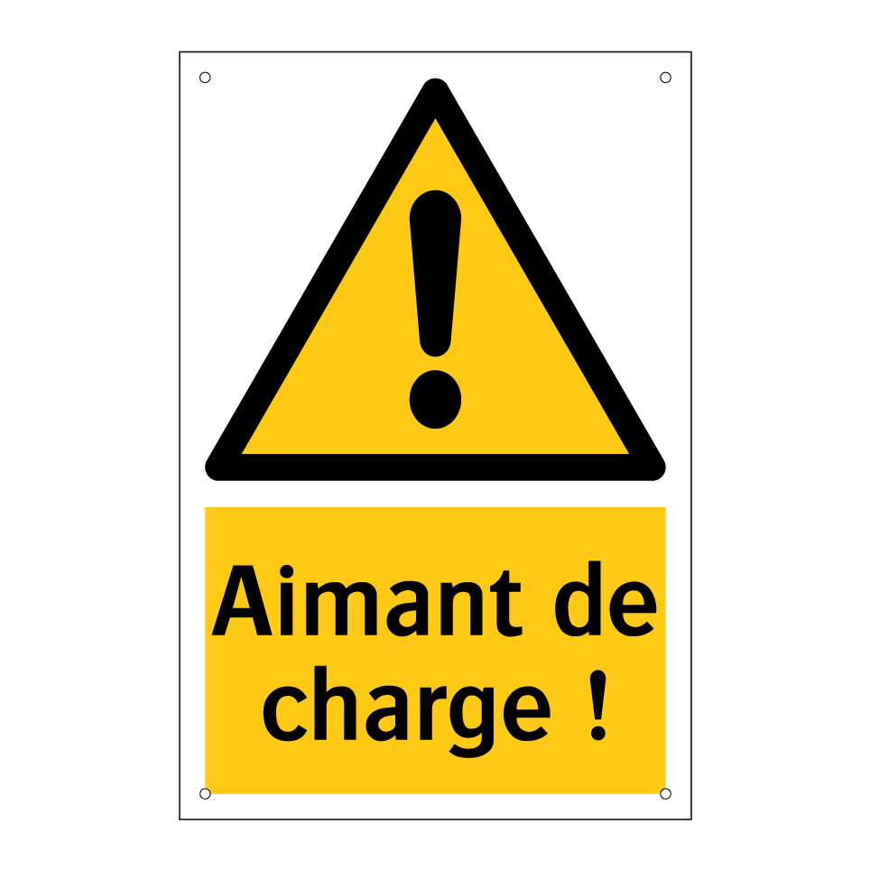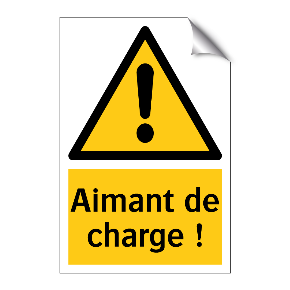 Panneau d'avertissement avec le texte : "Aimant de charge !"