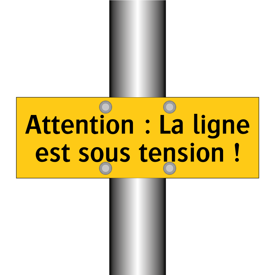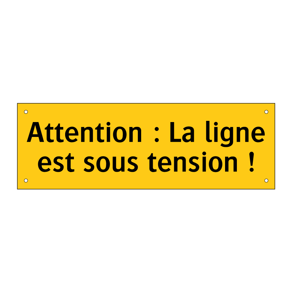 Panneau d'avertissement avec le texte : "Attention : La ligne est sous tension !"