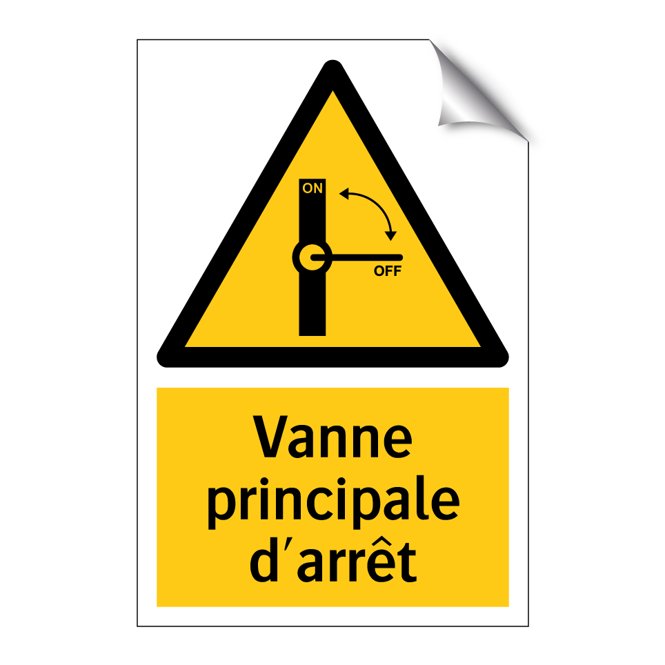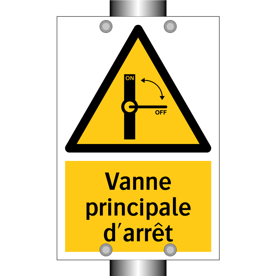 Panneau d'avertissement avec le texte : "Vanne principale d'arrêt"
