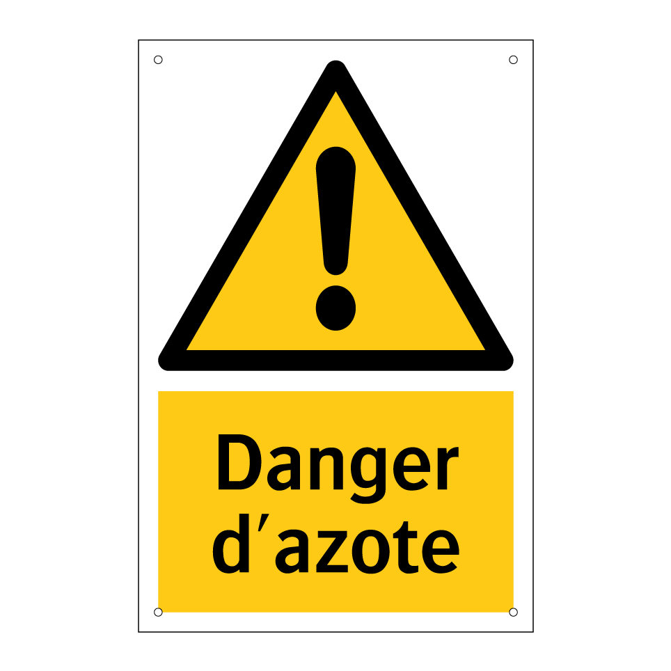 Panneau d'avertissement avec le texte : "Danger d'azote"