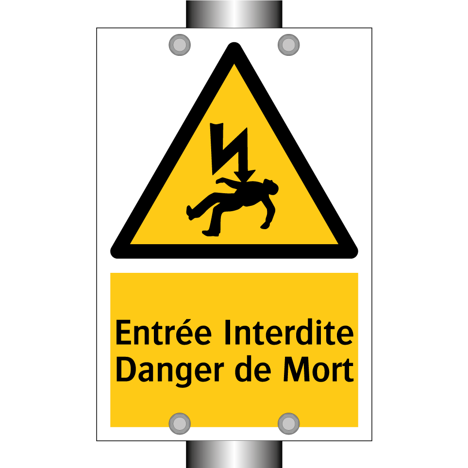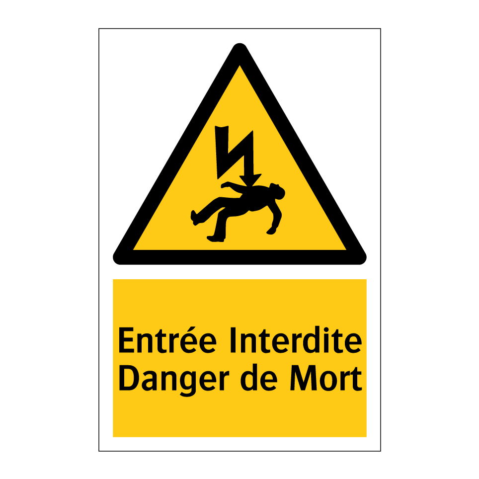 Panneau d'avertissement avec le texte : "Entrée Interdite Danger de Mort"