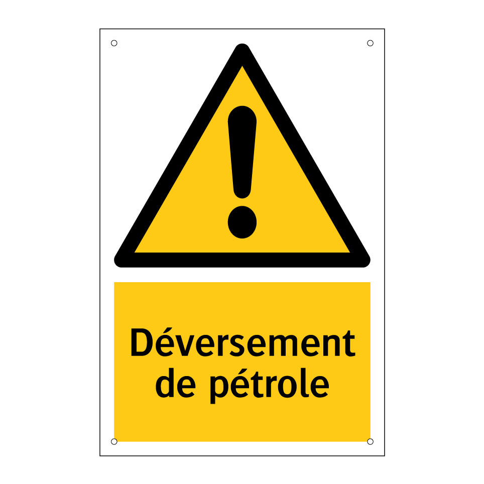 Panneau d'avertissement avec le texte : "Déversement de pétrole"