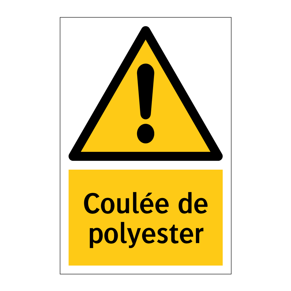 Panneau d'avertissement avec le texte : "Coulée de polyester"