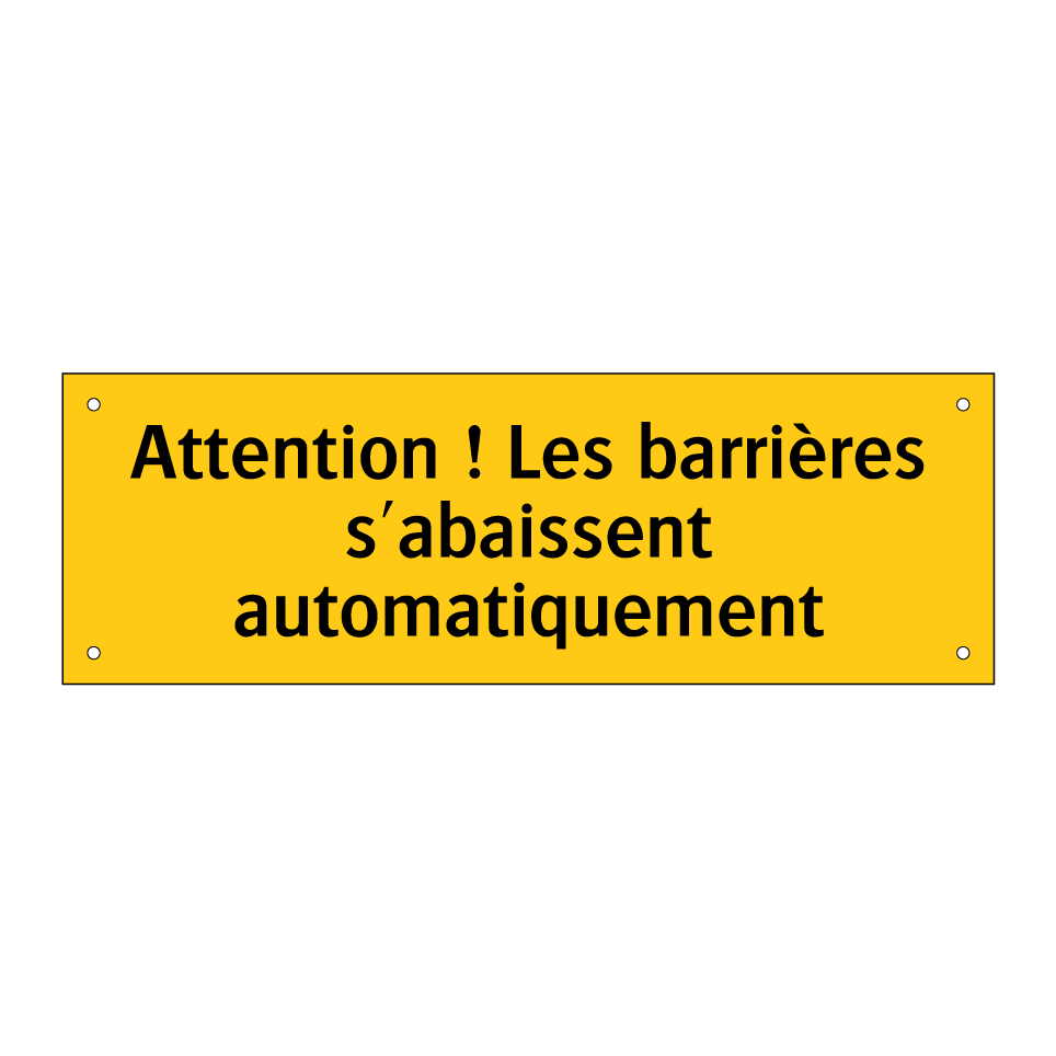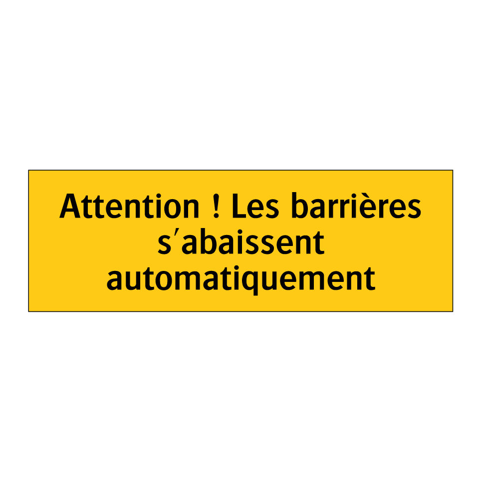 Panneau d'avertissement avec le texte : "Attention ! Les barrières s'abaissent automatiquement"