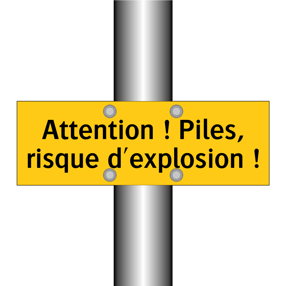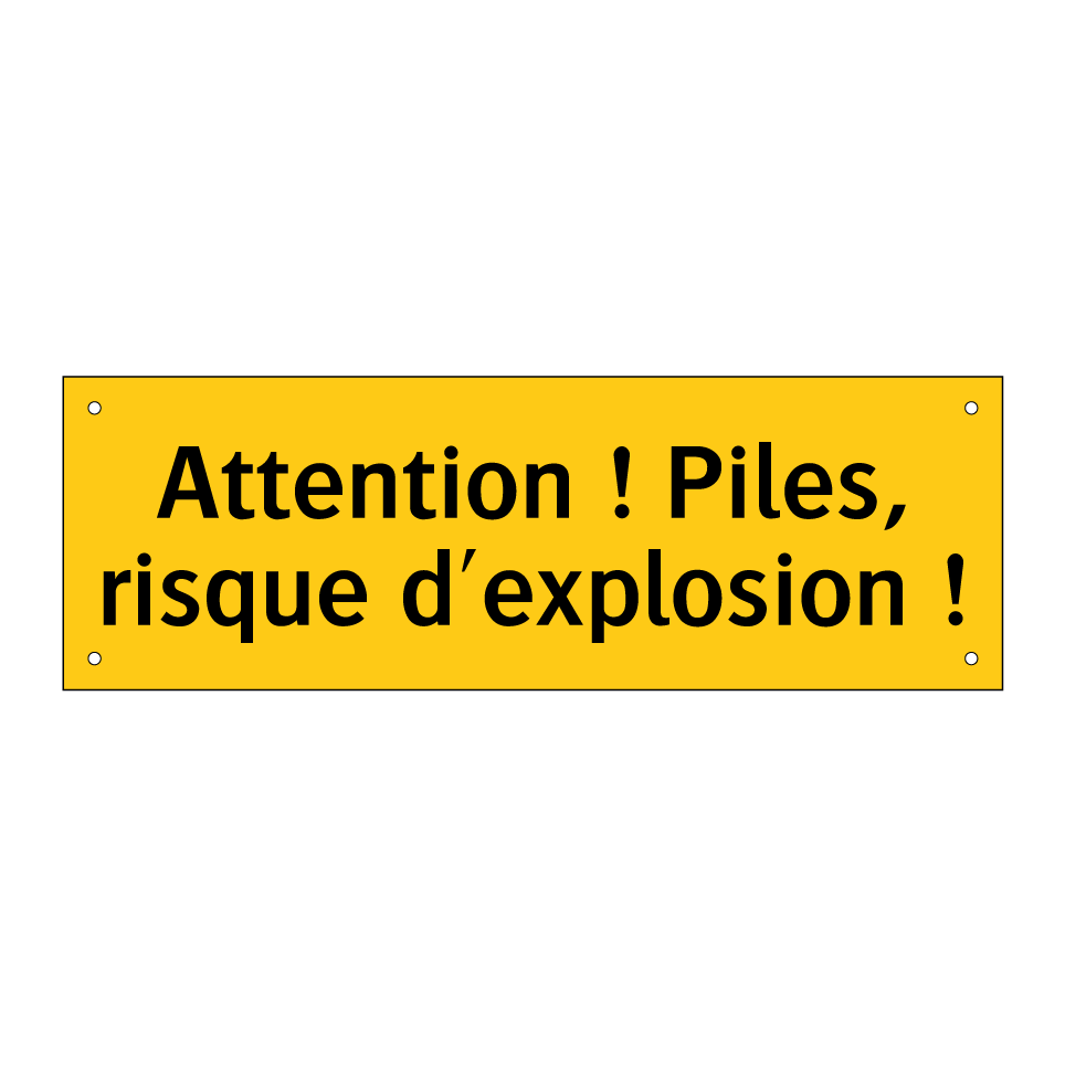 Panneau d'avertissement avec le texte : "Attention ! Piles, risque d'explosion !"