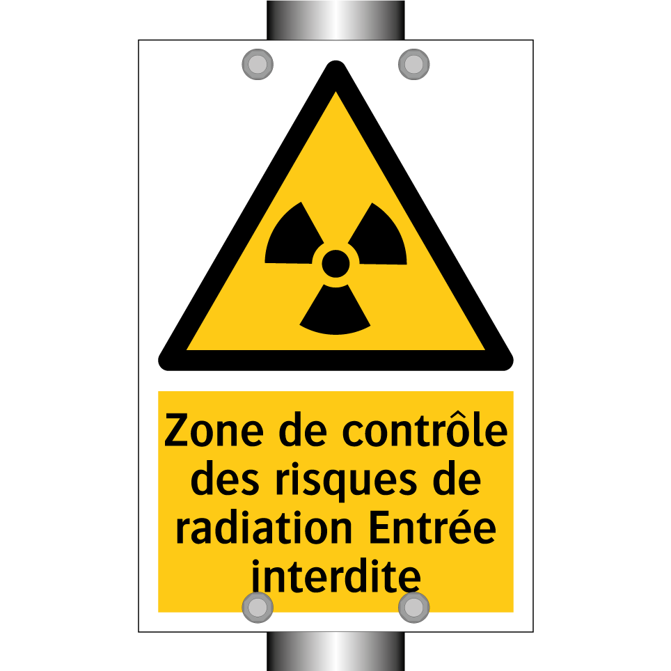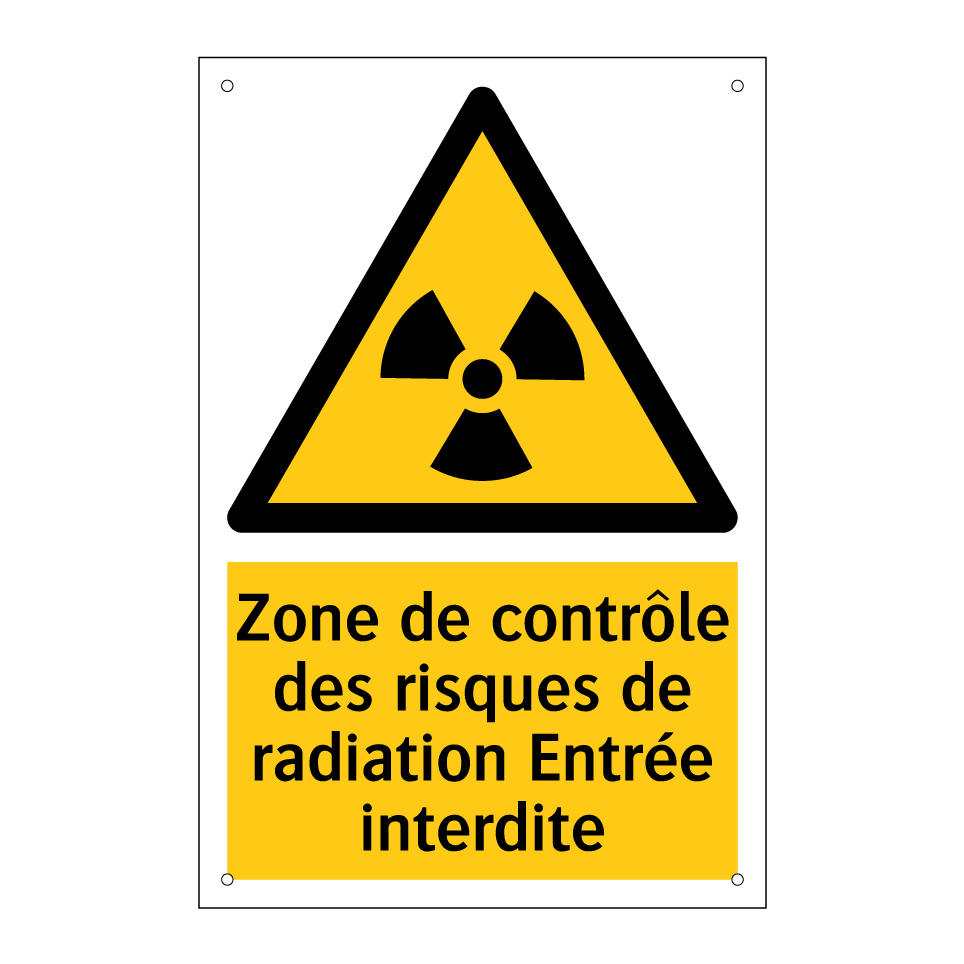 Ce panneau d'avertissement est essentiel pour garantir la sécurité dans les zones à risque de radiation. Il est conçu pour être placé à l'entrée de zones contrôlées, où l'accès est strictement interdit sans autorisation. Grâce à sa couleur jaune vive et son texte noir, il attire immédiatement l'attention, assurant que le message de danger est bien compris. Ce type de signalisation est idéal pour les installations industrielles, les laboratoires de recherche ou tout autre lieu où des précautions contre les radiations sont nécessaires. En installant ce panneau, vous protégez non seulement le personnel, mais aussi les visiteurs, en évitant toute exposition accidentelle.