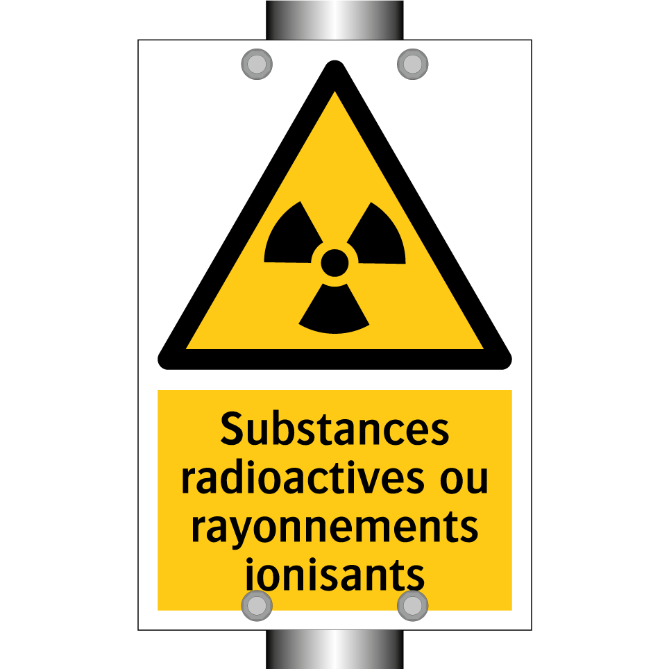 Panneau d'avertissement avec le texte : "Substances radioactives ou rayonnements ionisants"