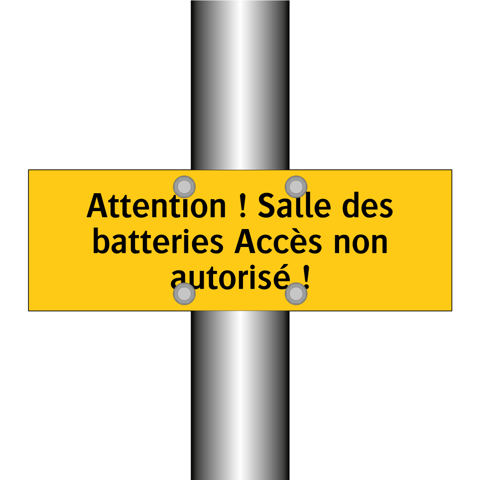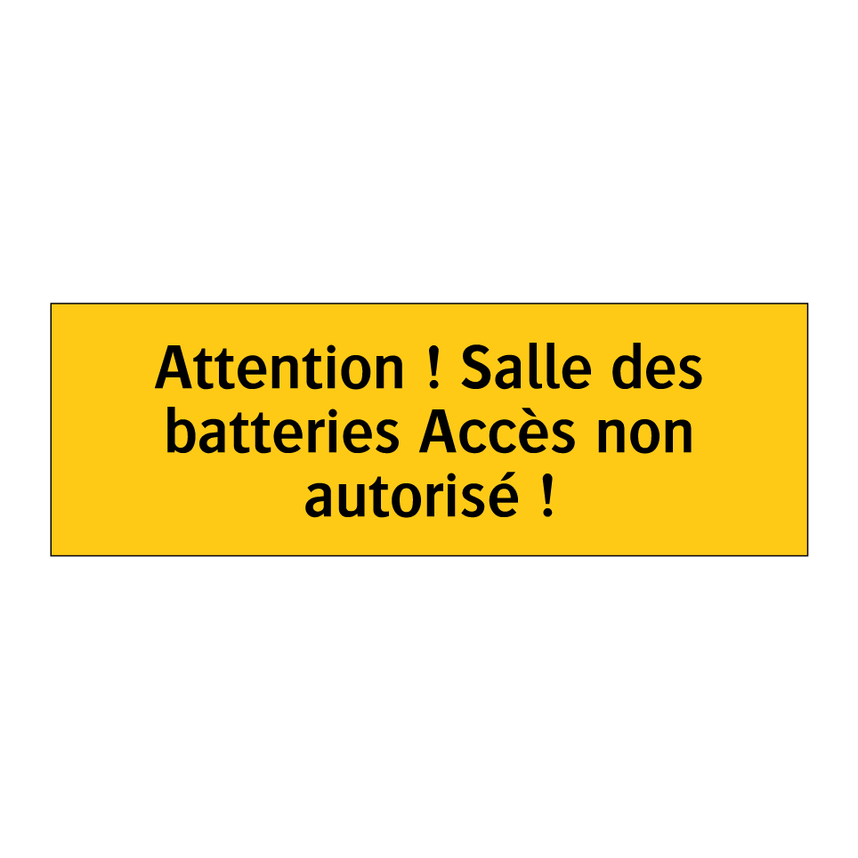 Panneau d'avertissement avec le texte : "Attention ! Salle des batteries Accès non autorisé !"