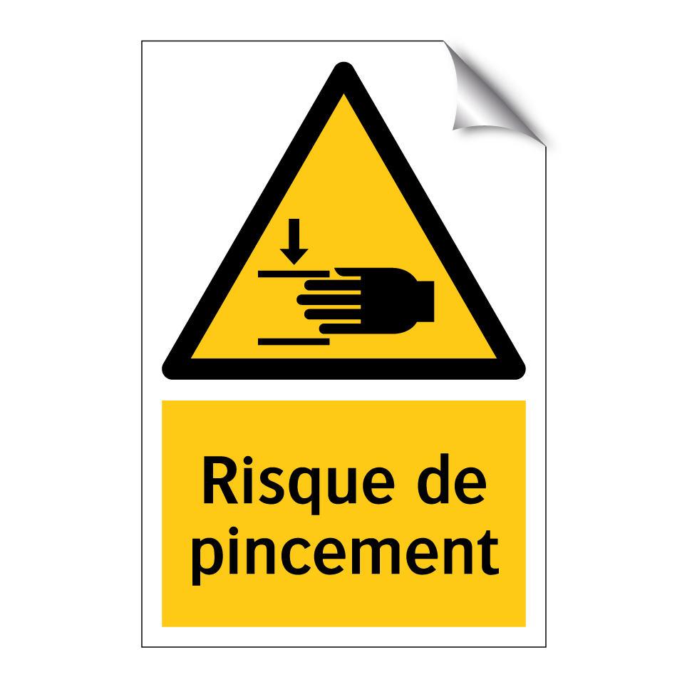 Panneau d'avertissement avec le texte : "Risque de pincement"
