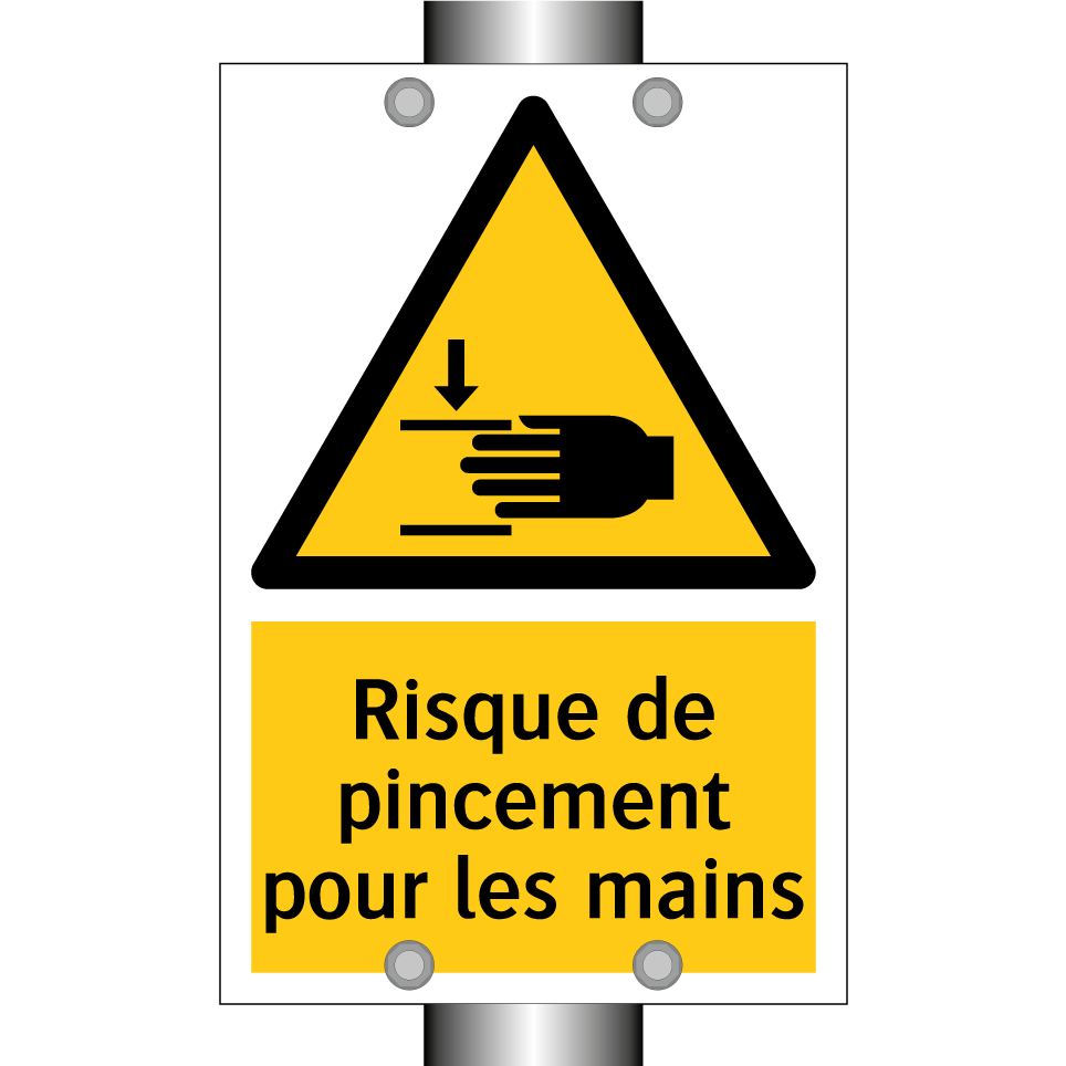 Panneau d'avertissement avec le texte : "Risque de pincement pour les mains"