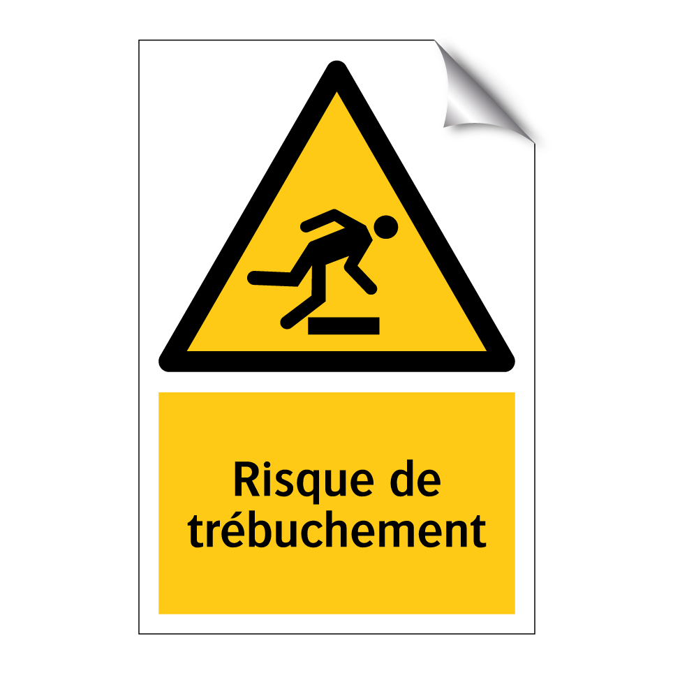 Panneau d'avertissement avec le texte : "Risque de trébuchement"
