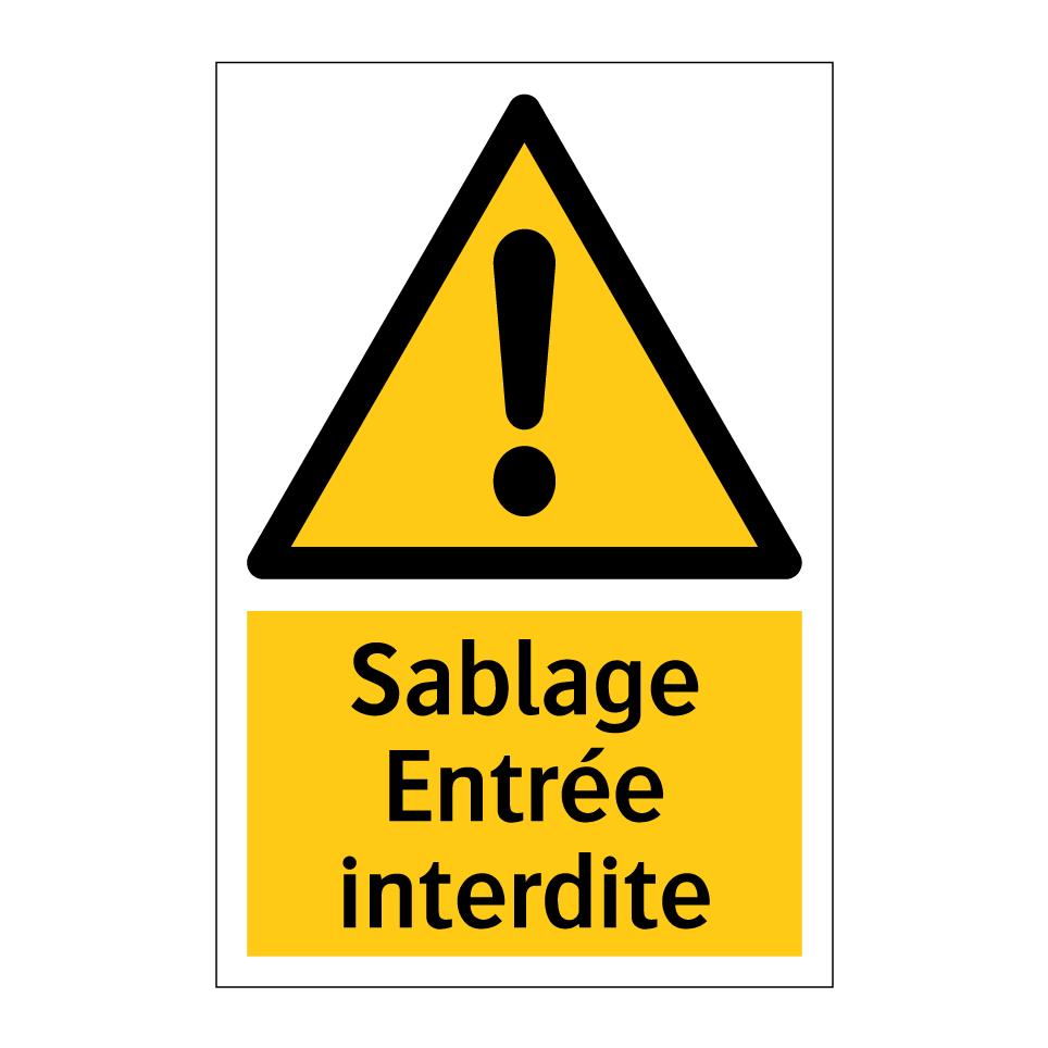 Panneau d'avertissement avec le texte : "Sablage Entrée interdite"