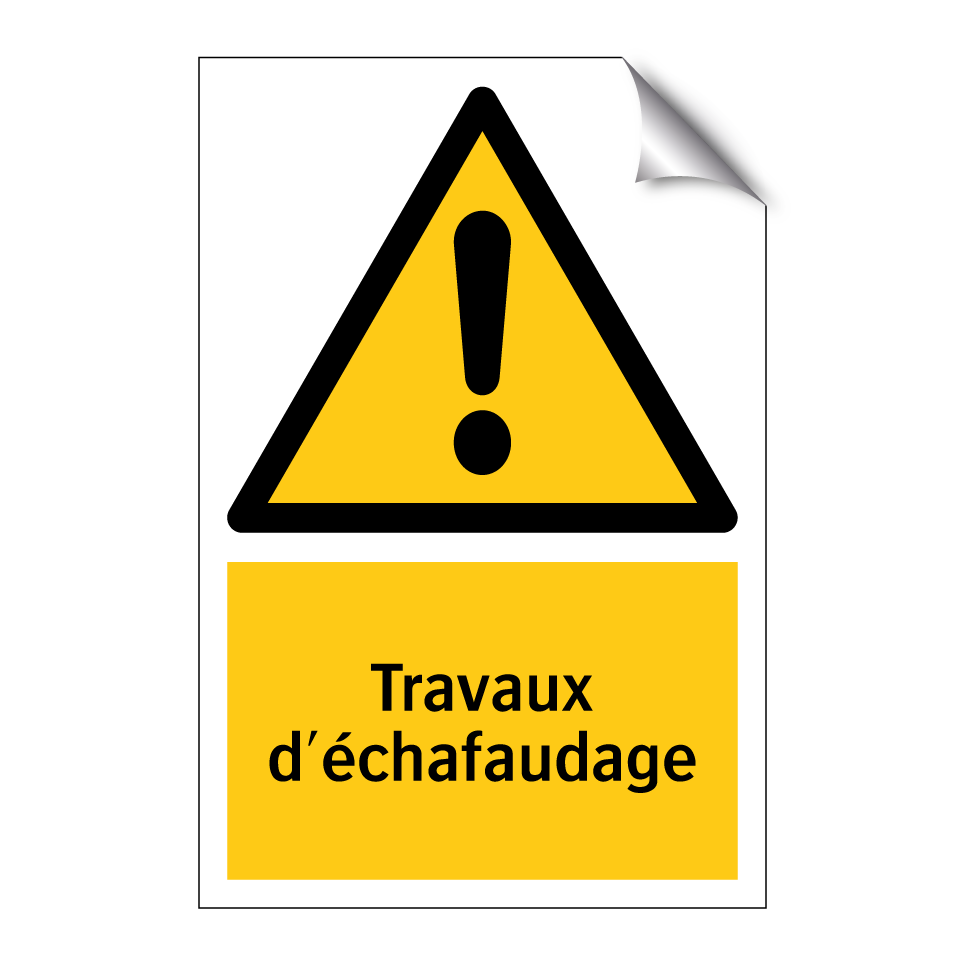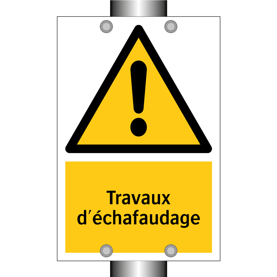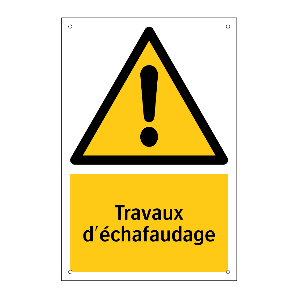 Panneau d'avertissement avec le texte : "Travaux d'échafaudage"