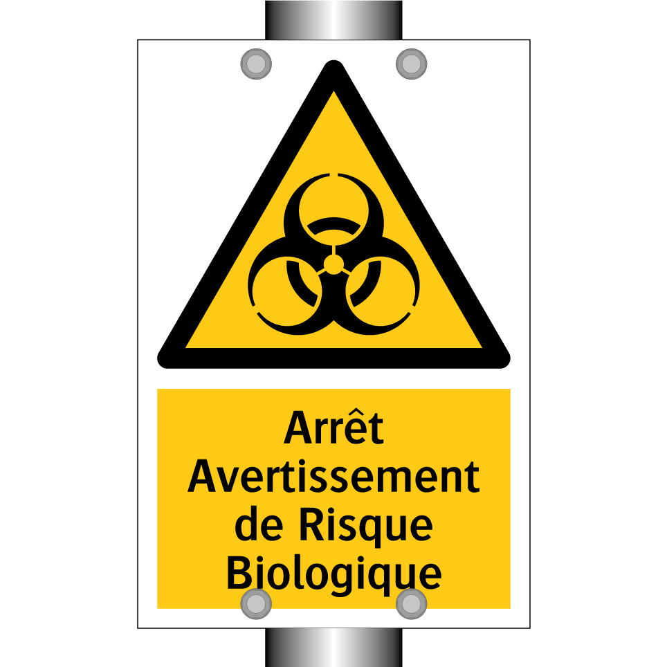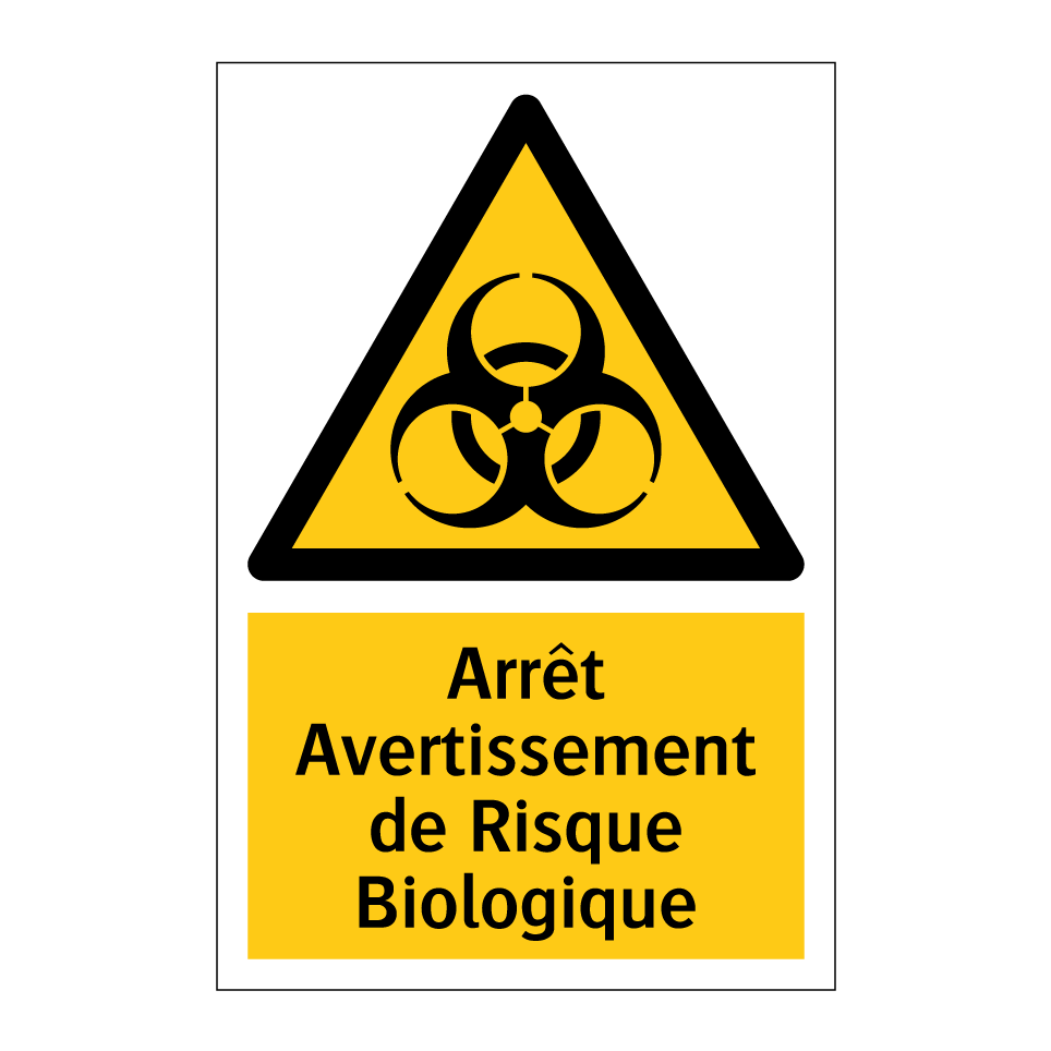 Panneau d'avertissement avec le texte : "Arrêt Avertissement de Risque Biologique"