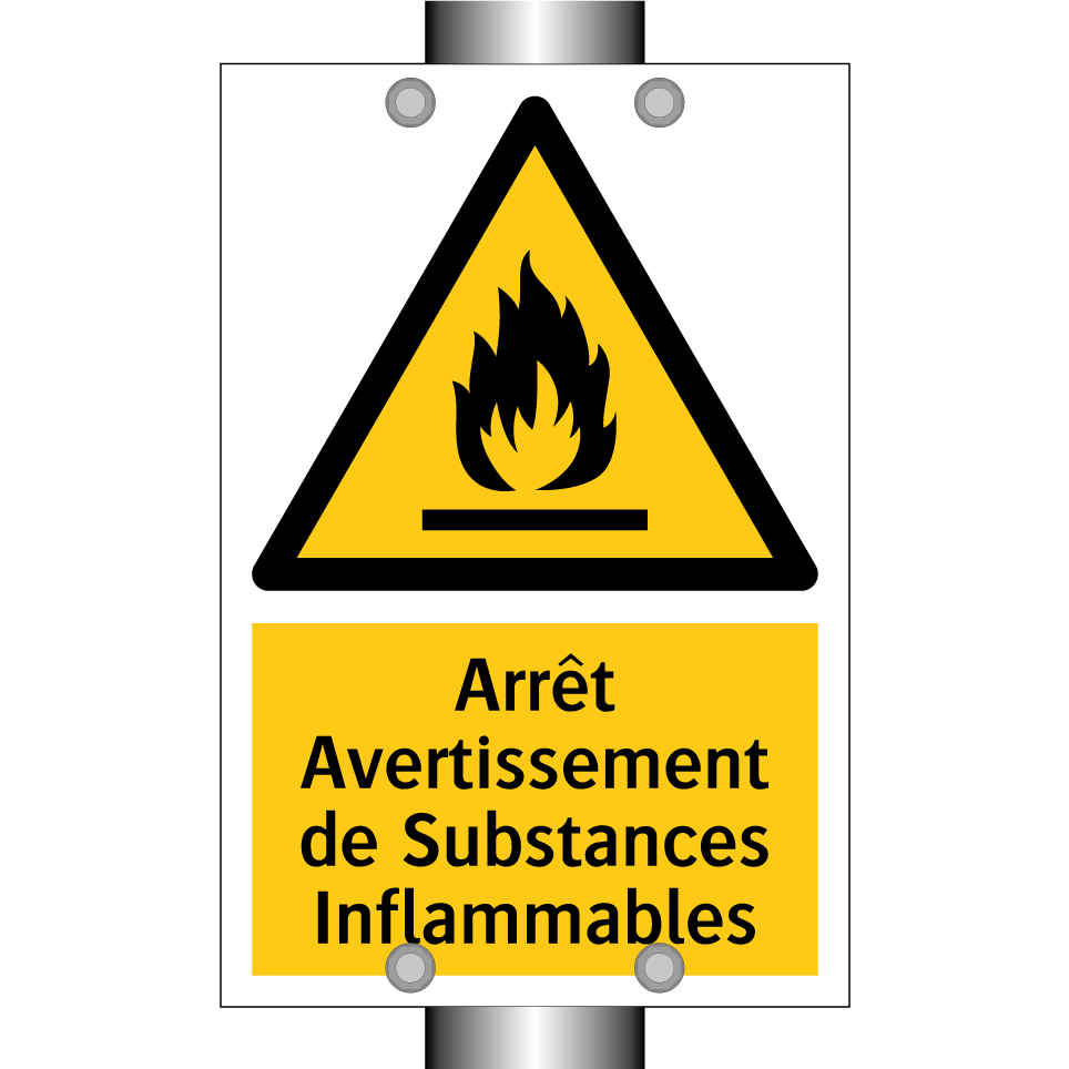 Panneau d'avertissement avec le texte : "Arrêt Avertissement de Substances Inflammables"