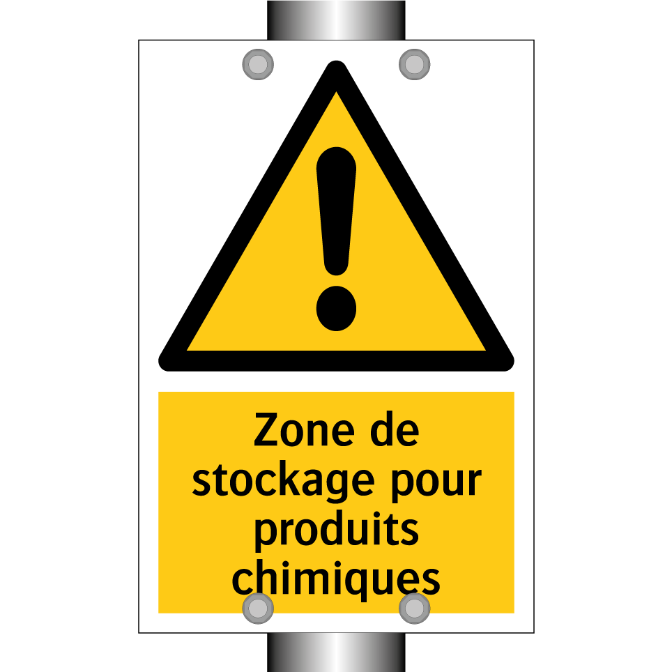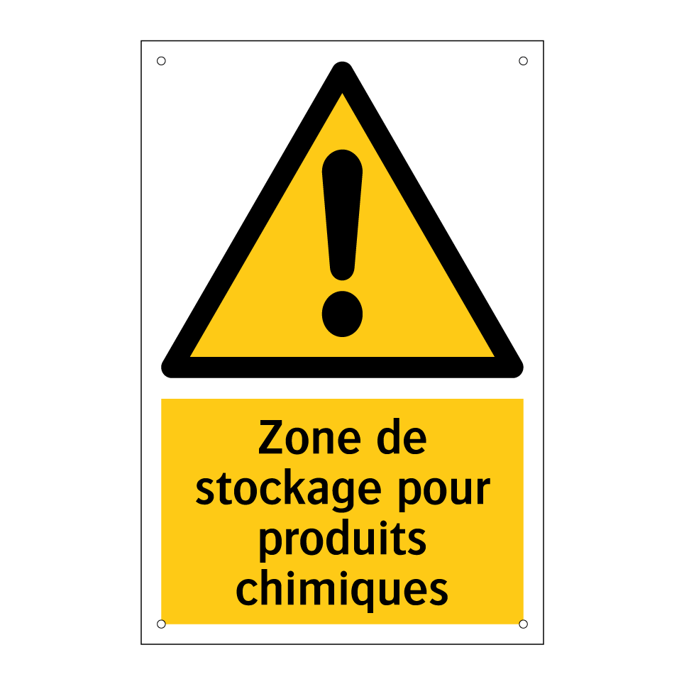Panneau d'avertissement avec le texte : "Zone de stockage pour produits chimiques"