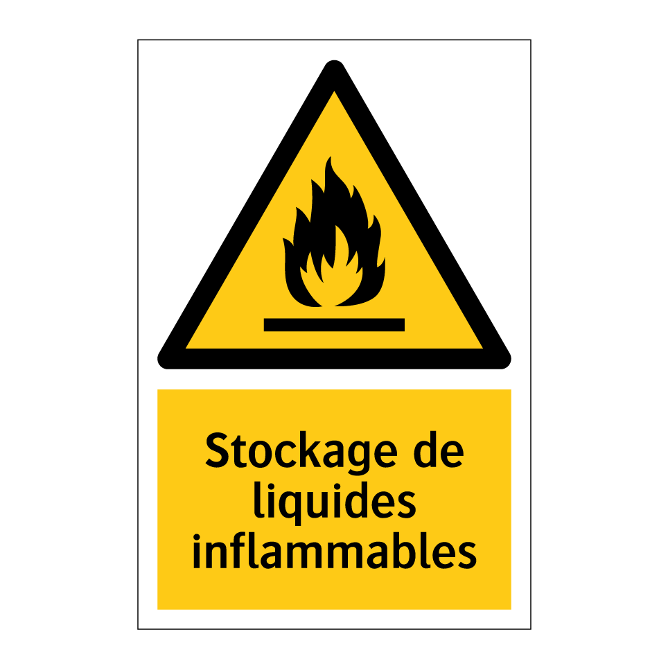 Panneau d'avertissement avec le texte : "Stockage de liquides inflammables"